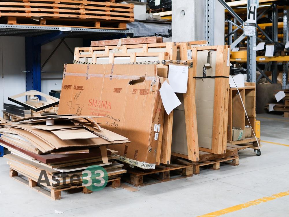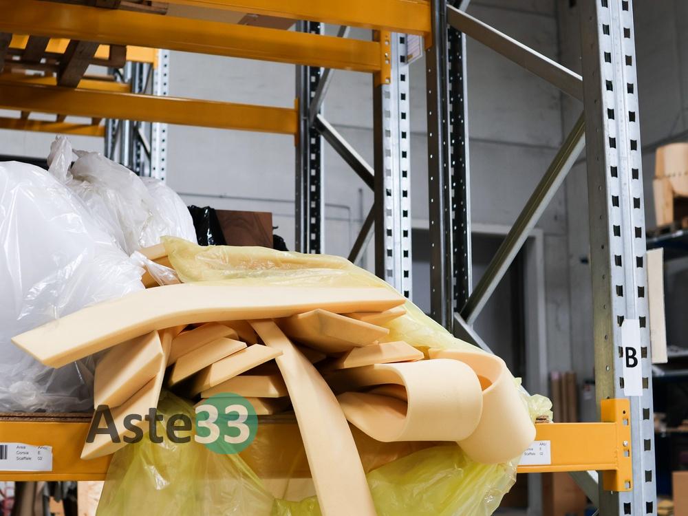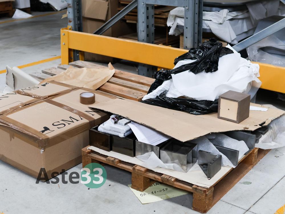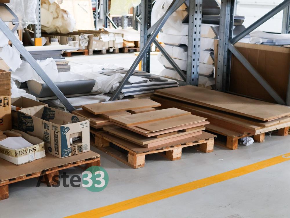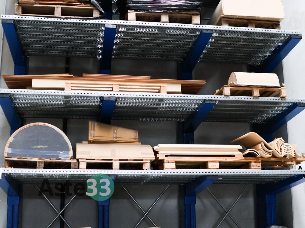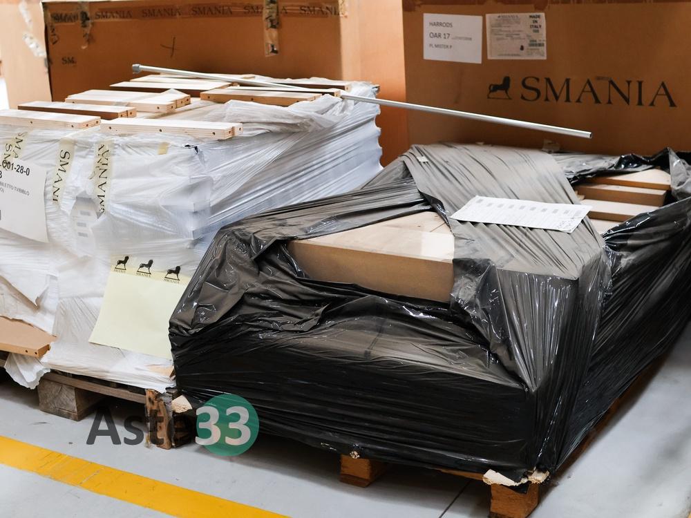 Varie giacenze di magazzino composte da materiale semilavorato, prodotto finito, accessori e materie prime per la composizione di arredamento (es: tessuti, pellame, stoffe, legname varie essenze, semilavorati, accessori per macchinari, materia prima, viteria e minuteria, ferramenta, arredi da assemblare e da finire, ecc).