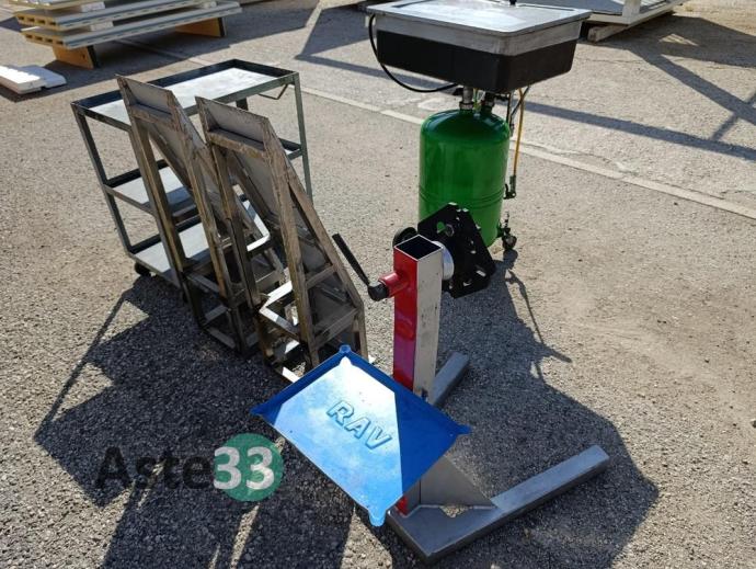 Posizionatore motore, 2 pedane, carrellino metallico e vasca da lavaggio Raasm
