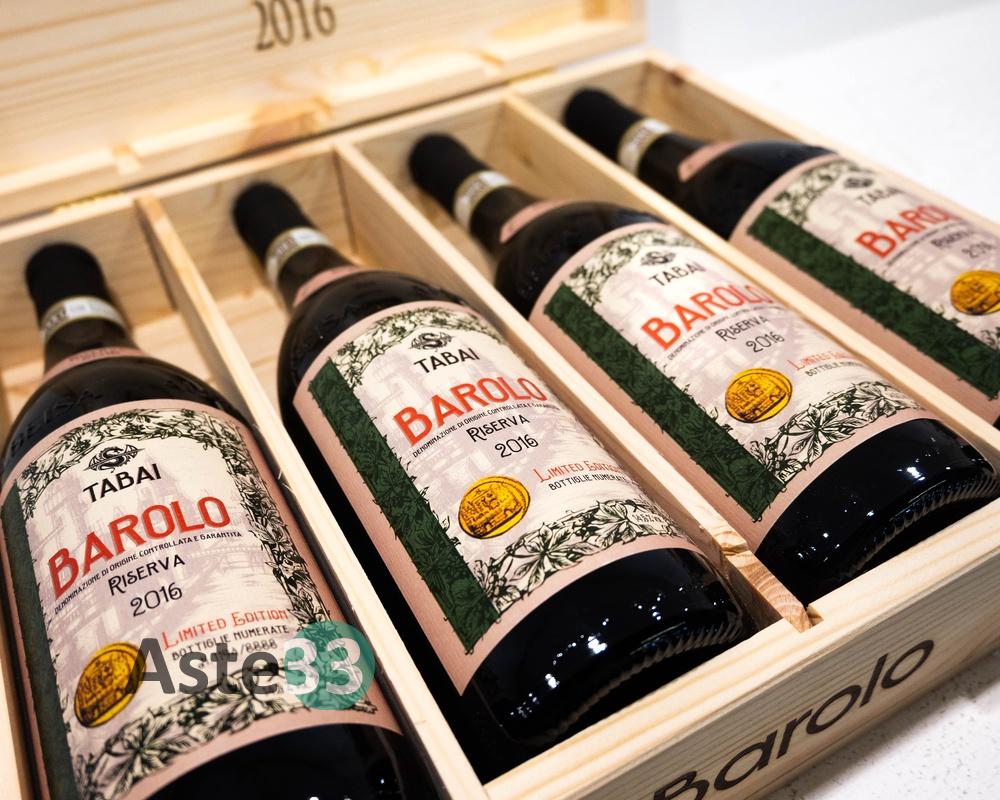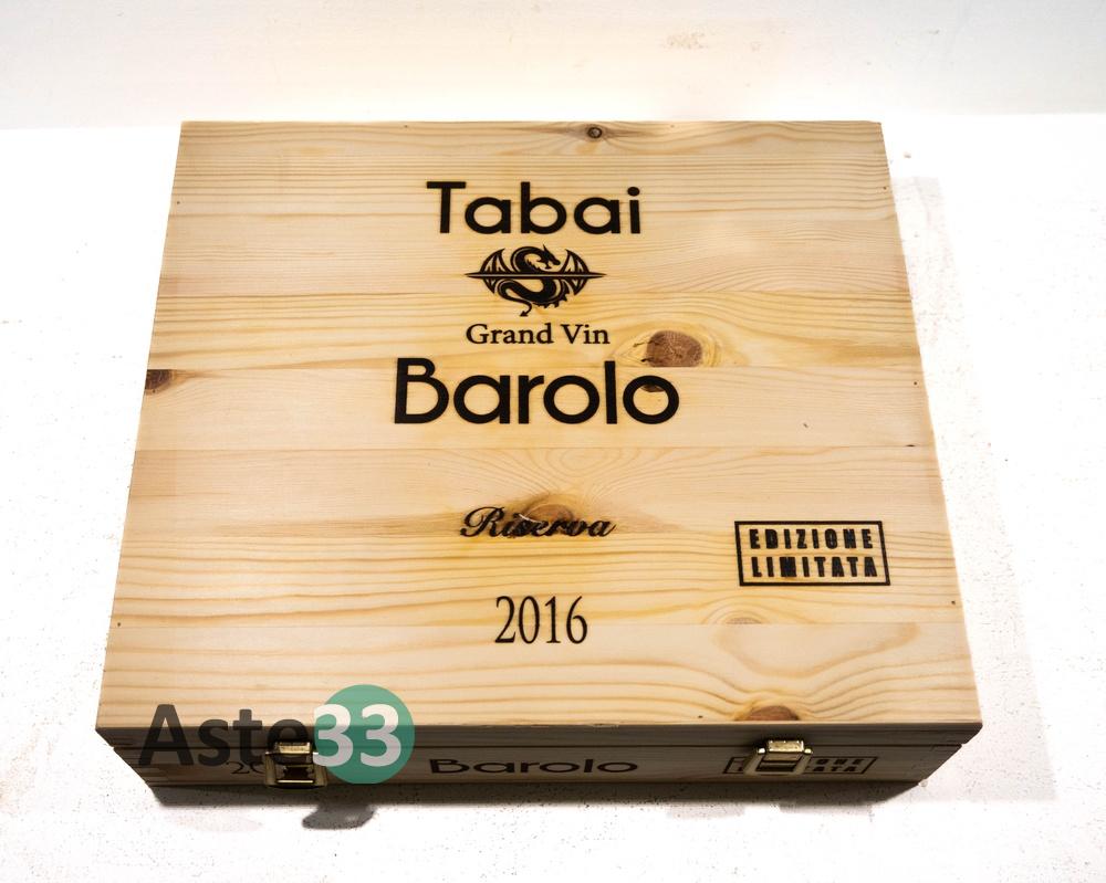 Cassetta di legno contenente n.4 bottiglie (0,75L) di Barolo Gran Vin Tabai, Riserva 2016 in edizione limitata, vol.14,5% DOCG.