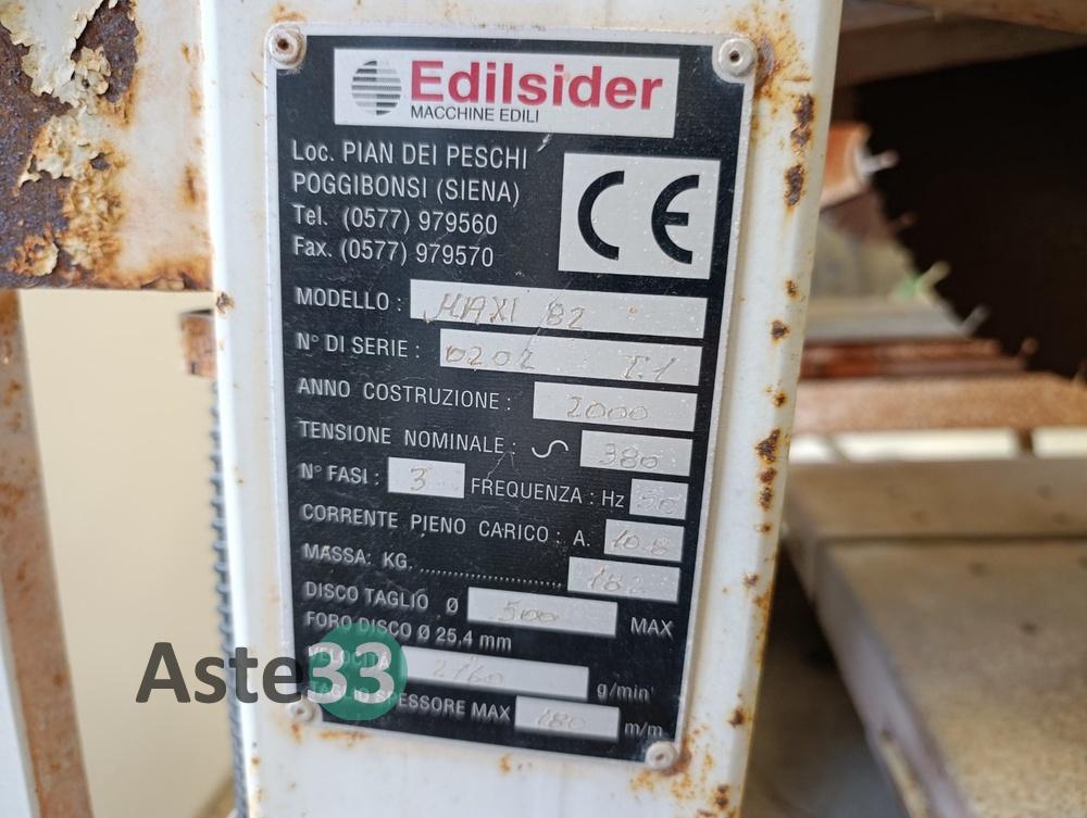 Segatrice per blocchi Edilsider, modello MAXI 82, n. serie 0202 T.1, anno di costruzione 2000, tensione nominale 380, disco di taglio massimo diametro 500;