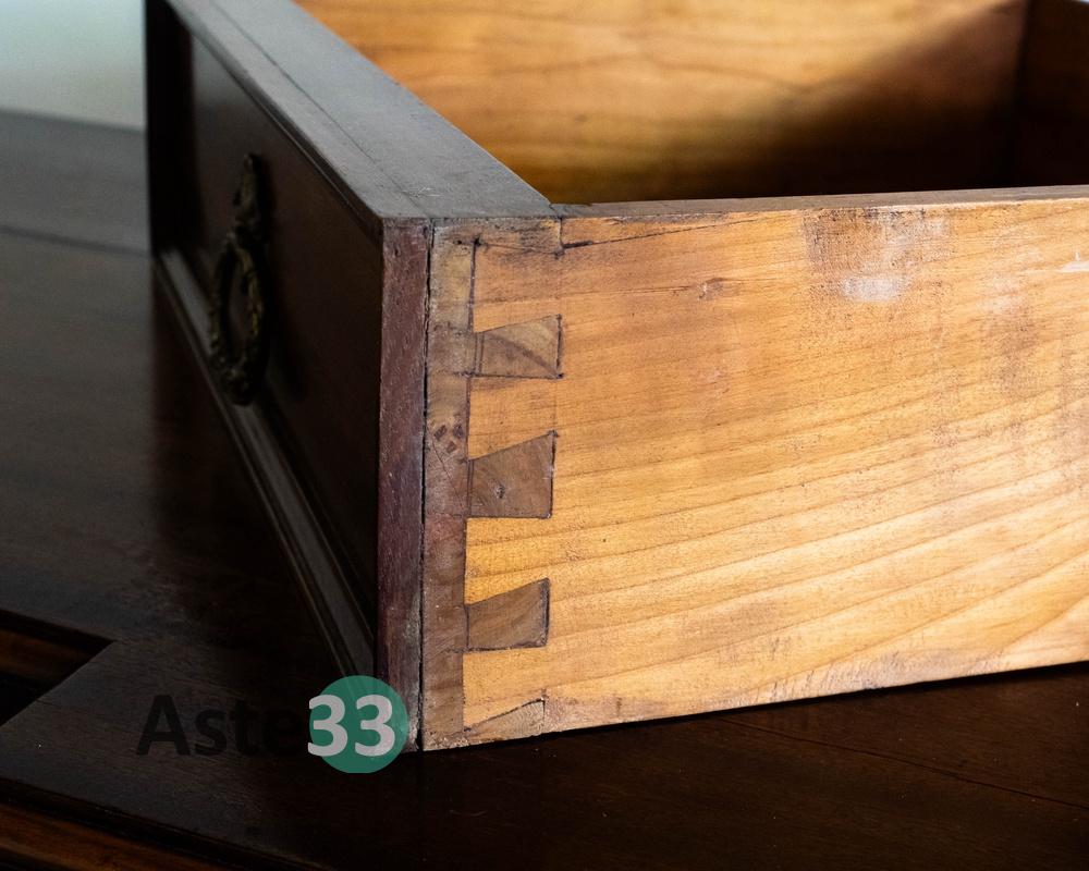 Mobile in legno modello buffet in stile Impero – cassetti a coda di rondine – finimenti in bronzo con allegorie classiche – misura 210x60x100cm – presenta segni d’usura – piano con fenditure