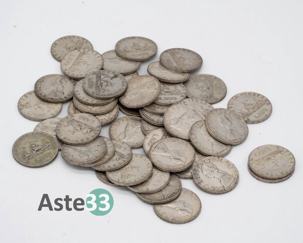 45 monete da 500 lire caravella in argento – anno 195833 monete da 500 lire caravella in argento – anno 195933 monete da 500 lire caravella in argento – anno 196025 monete da 500 lire caravella in argento – anno 196110 monete da 500 lire caravella in argento – anno 196411 monete da 500 lire caravella in argento – anno 1966