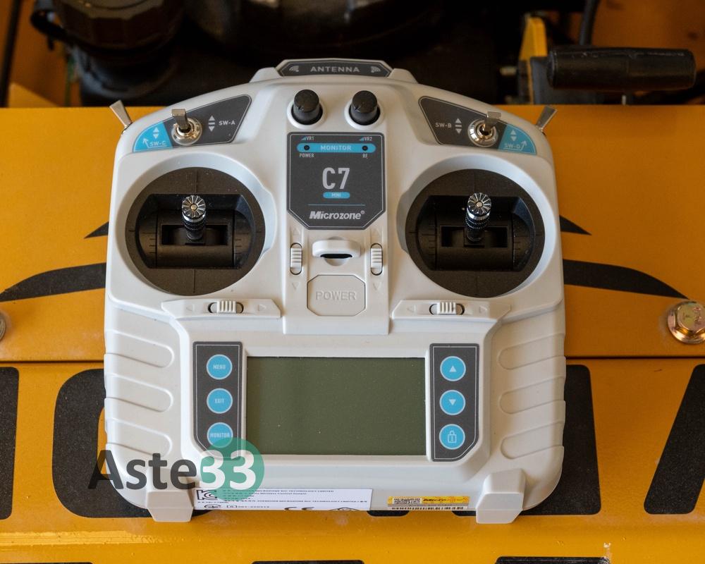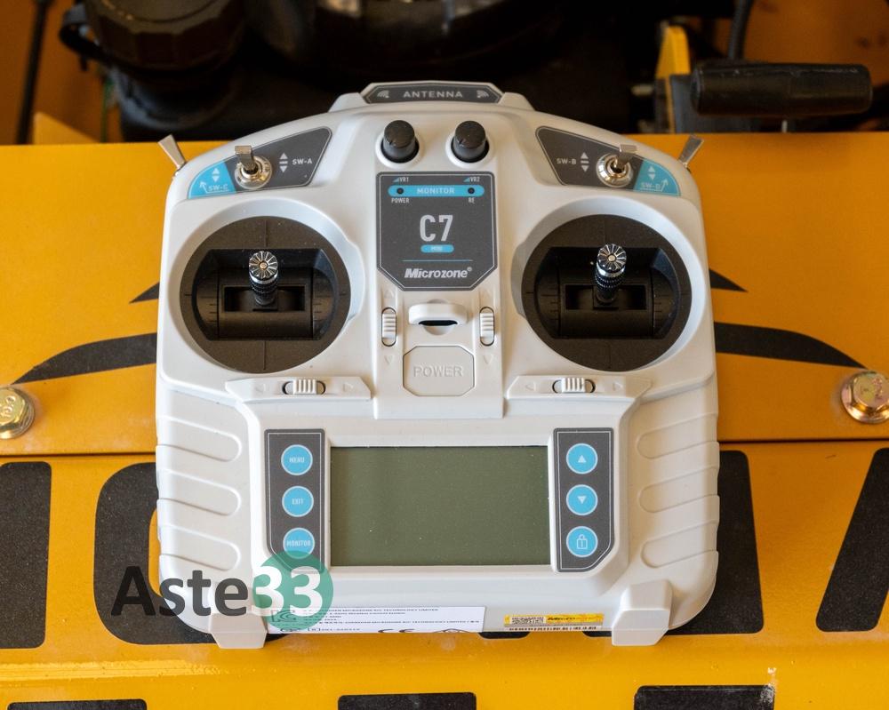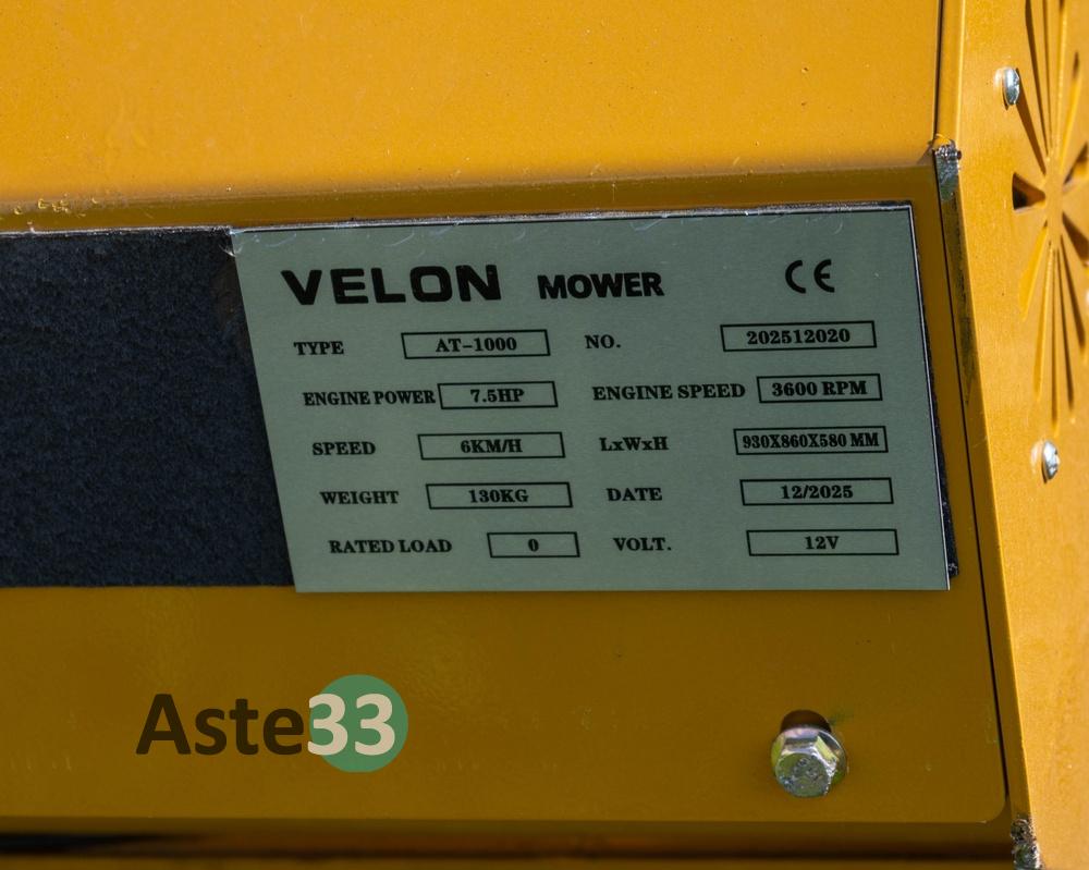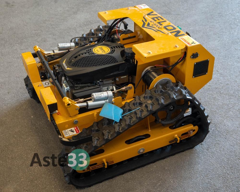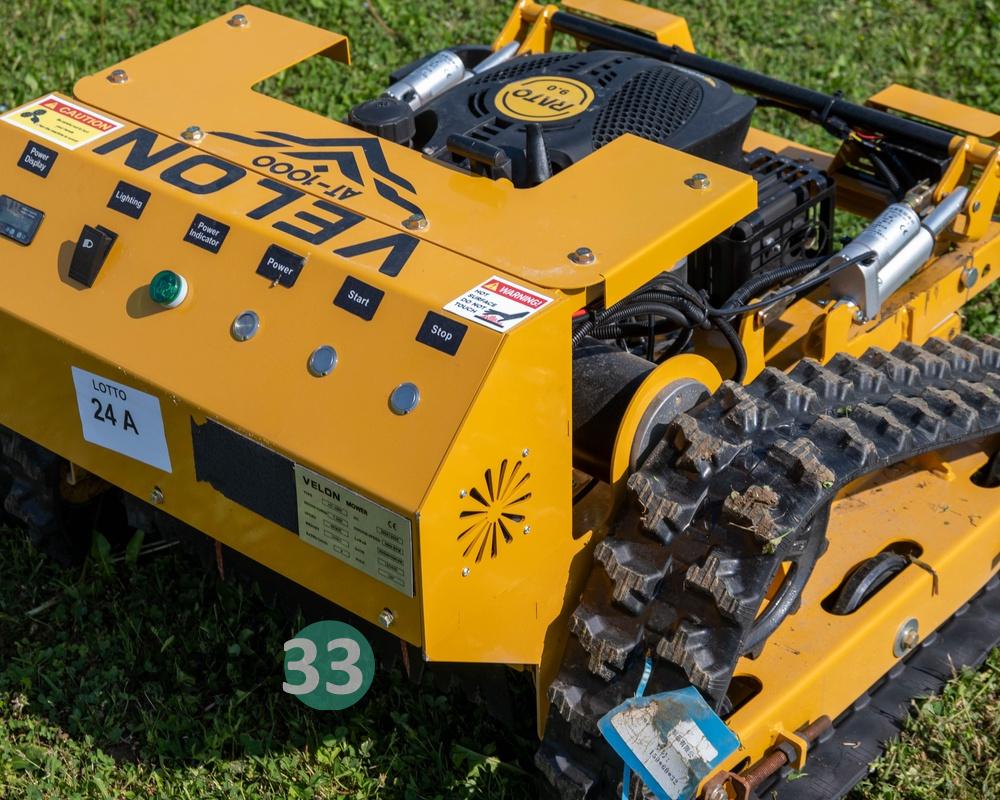 Falciatrice radiocomandata modello Velon AT-1000 - doppio cingolo trainante - motore gasoline - accensione elettronica - radiocomando digitale - altezza lama elettro regolabile – engine power 7,5 Hp – velocità 6Km/h – peso 130Kg – engine speed 3600 RPM – 12 Volt