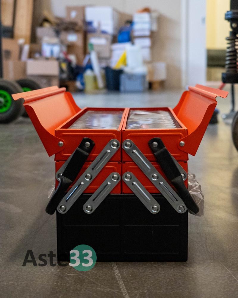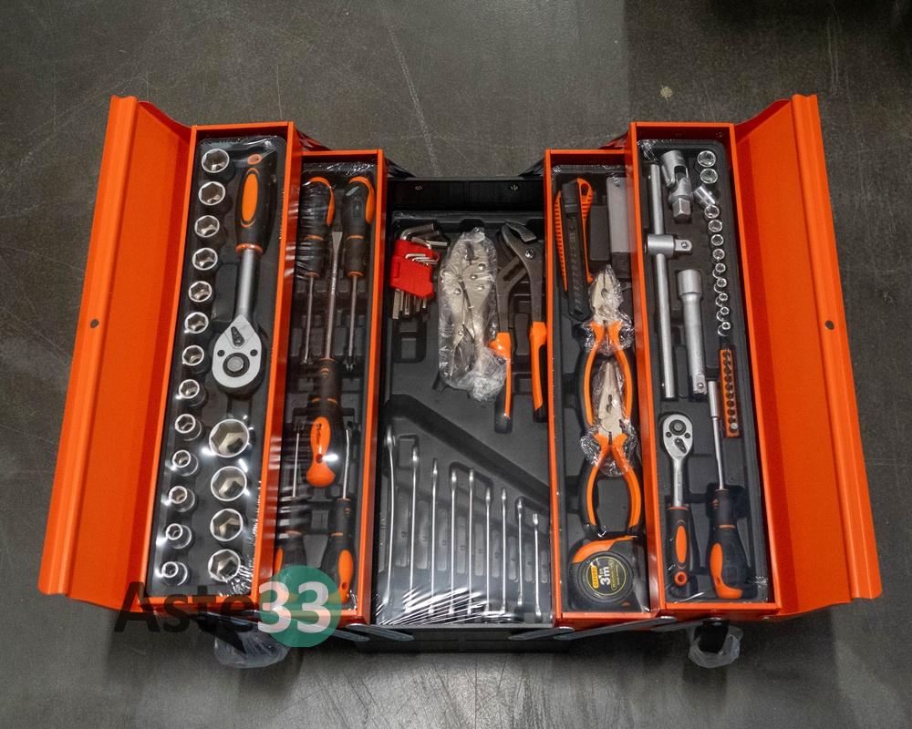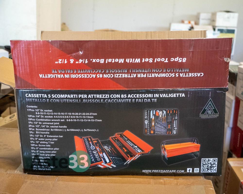 Cassetta in acciaio completa di attrezzi – apertura a soffietto - 5 scomparti – 85 pezzi