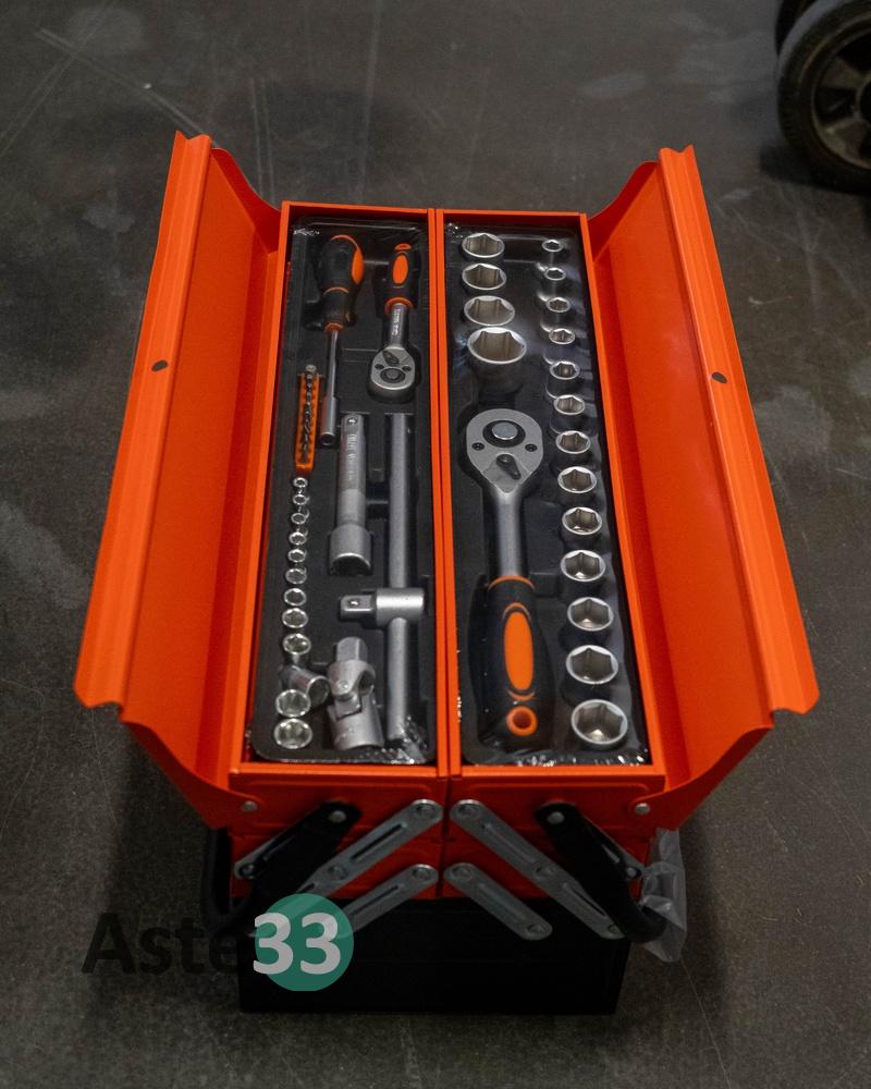 Cassetta in acciaio completa di attrezzi – apertura a soffietto - 5 scomparti – 85 pezzi