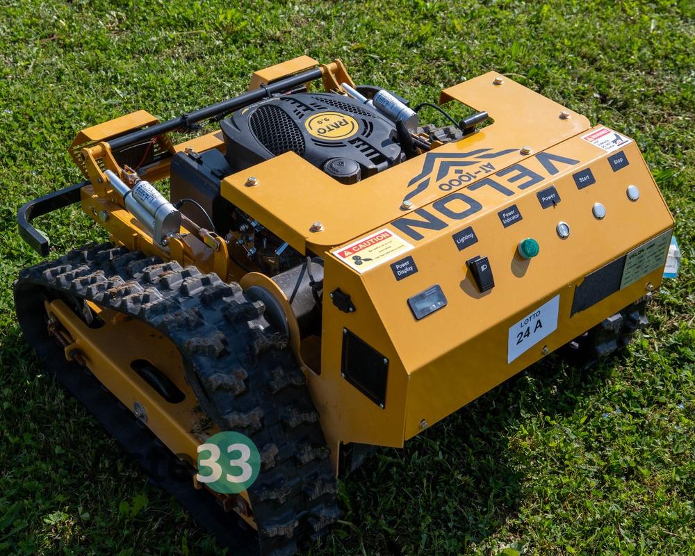Falciatrice radiocomandata modello Velon AT-1000 - doppio cingolo trainante - motore gasoline - accensione elettronica - radiocomando digitale - altezza lama elettro regolabile – engine power 7,5 Hp – velocità 6Km/h – peso 130Kg – engine speed 3600 RPM – 12 Volt – numero di serie 202512020