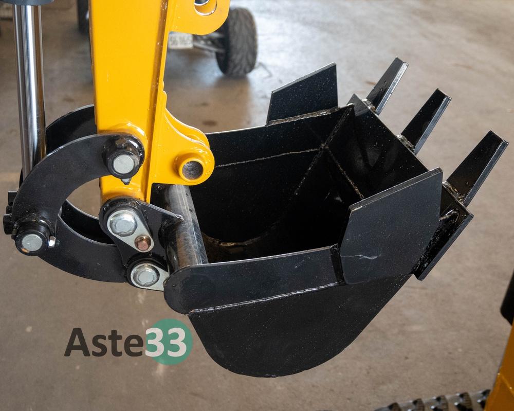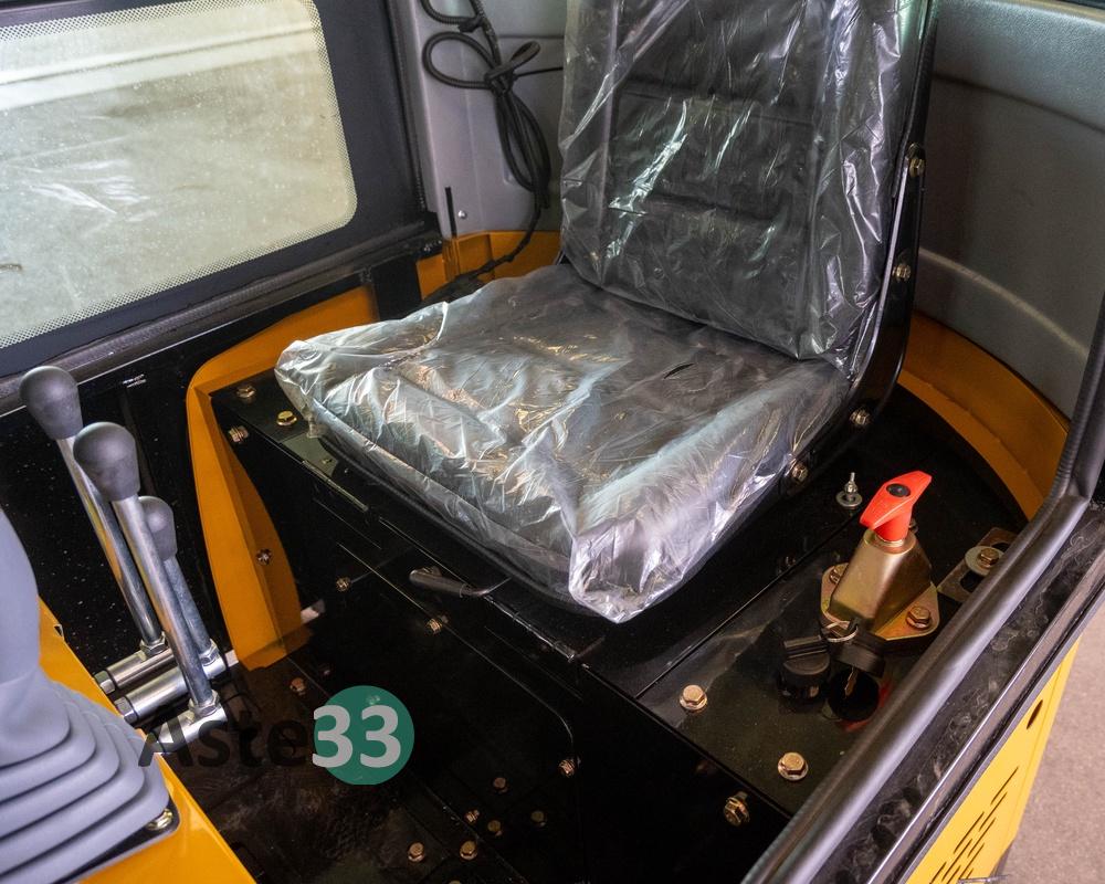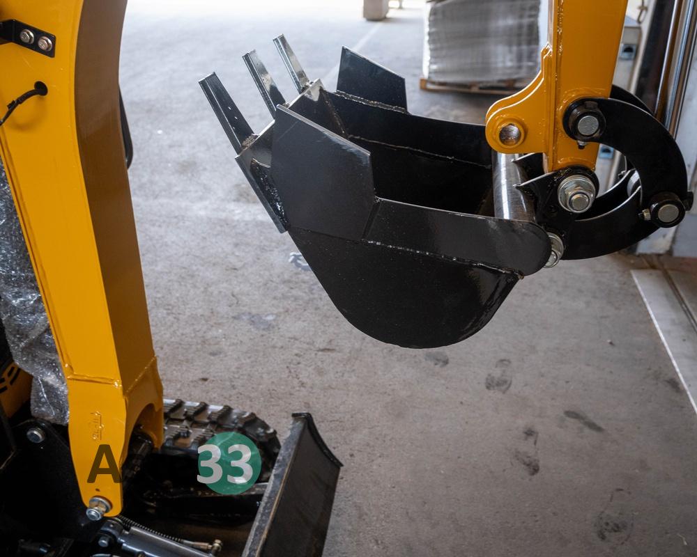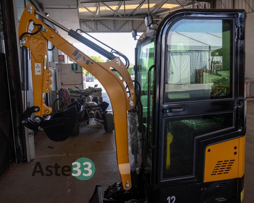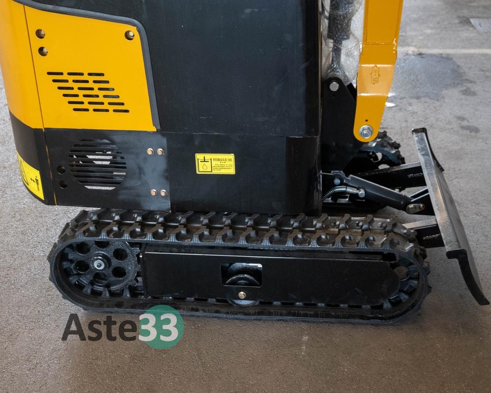 Miniescavatore cingolato con cabina in vetro - completo di benna da scavo - accensione elettronica - cingoli in gomma - ralla rotazione continua 360 gradi - attacco e comando per martellone - mai usato 0 ore – engine power 12HP – velocità massima 5 km/h – max. operating weight 1200kg – max digging deph 1650MM – numero di serie 202612605