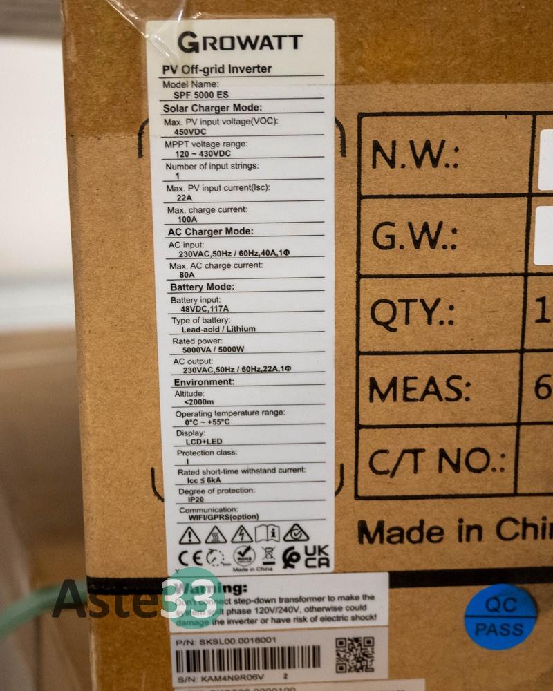 Kit fotovoltaico completo GROWATT 5kW, composto da n.9 pannelli monocristallini east lux 550 watt – n.1 inverter GROWATT 5 Kw - cavi e connettori di collegamento – n.1 pacco di batterie litio ESG 5 kW con display digitale - kit mai registrato - mai usato imballato nella sua confezione originale - kit pronto per il montaggio