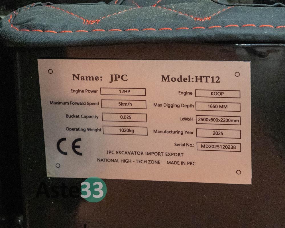 Miniescavatore cingolato - completo di benna da scavo - accensione elettronica - cingoli in gomma - ralla rotazione continua 360 gradi - attacco e comando per martellone - nuovo con 0 ore d’utilizzo – velocità massima 5km/h – bucket capacity 0.025 – operation weight 1020kg – max. digging depth 1650 MM – numero di serie MD2025120238