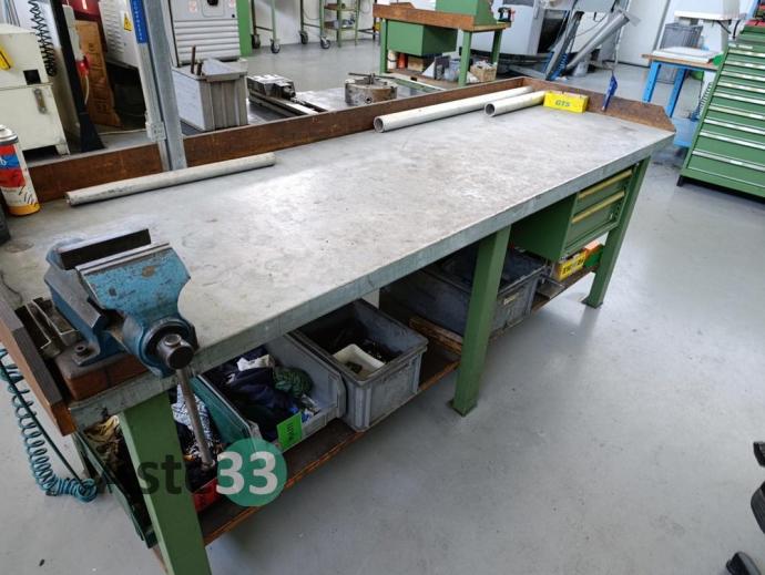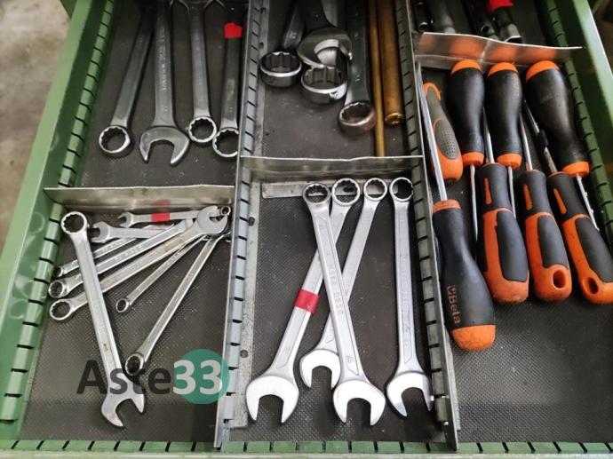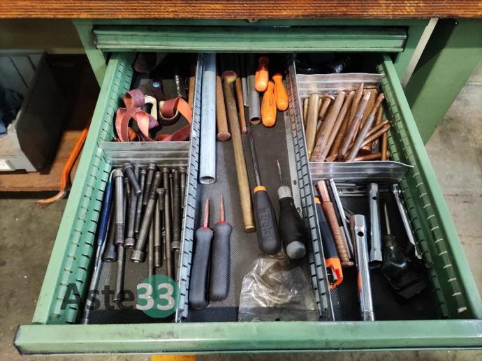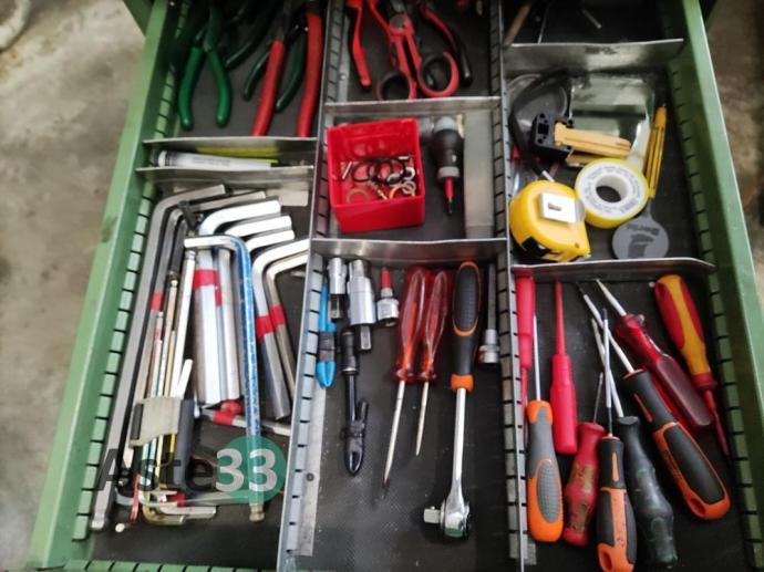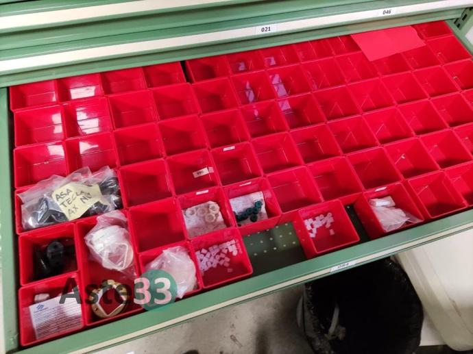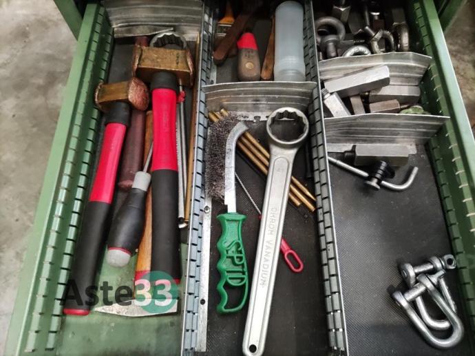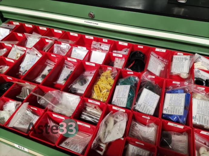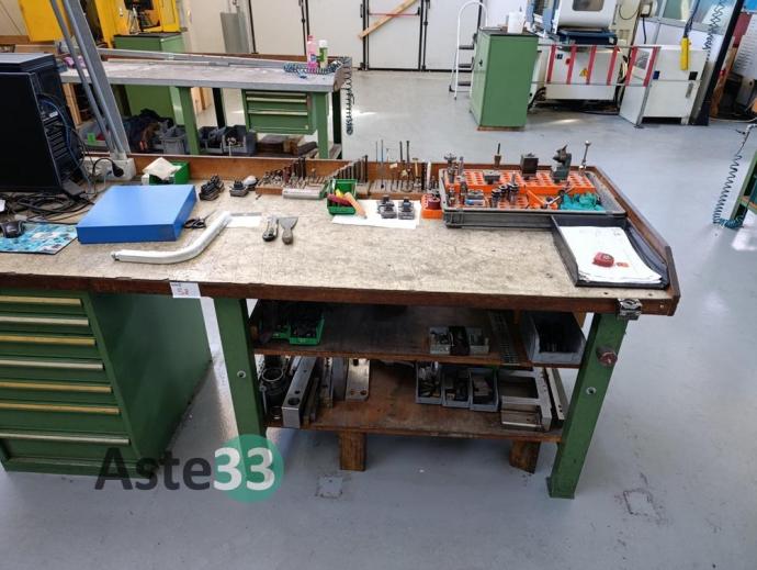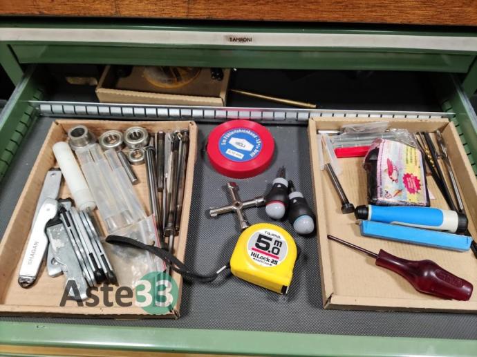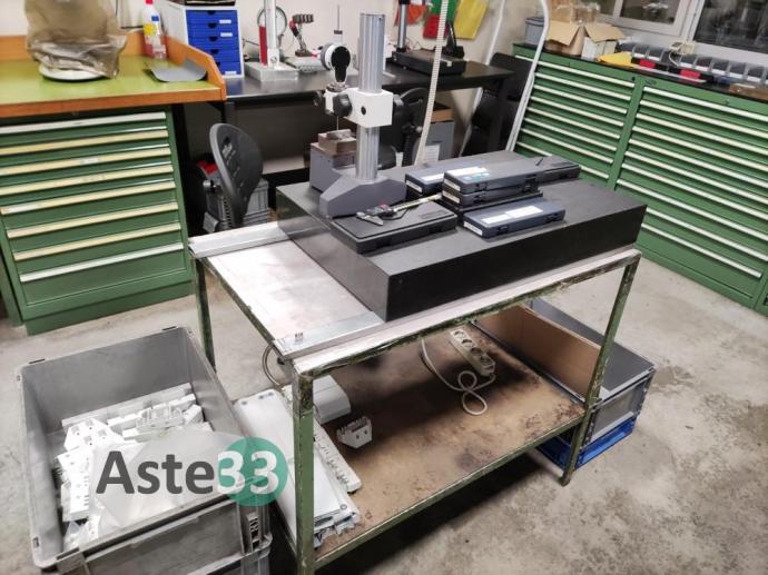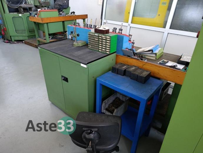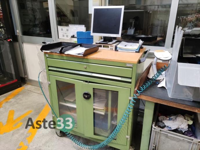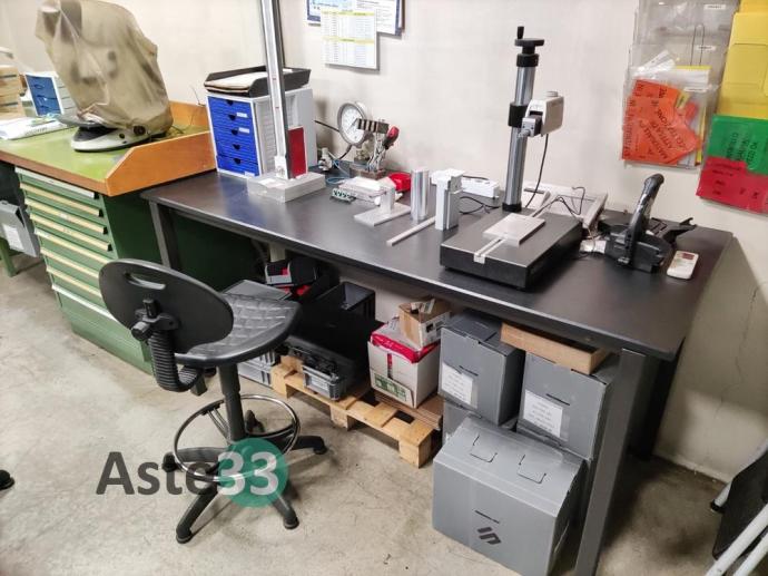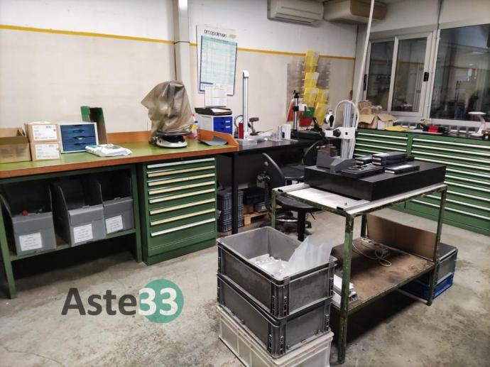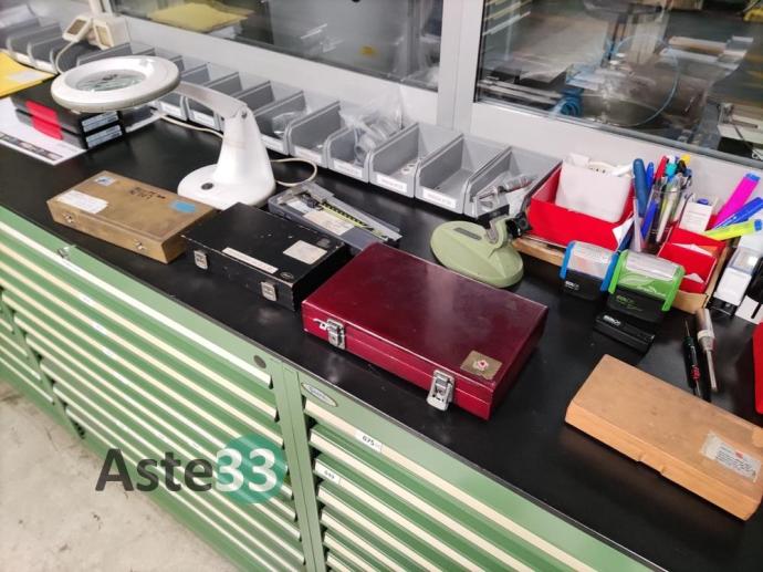 Vari strumenti di misura, arredamento per sala metrologica con cassettiere, banchi e piano di riscontro