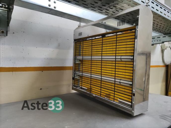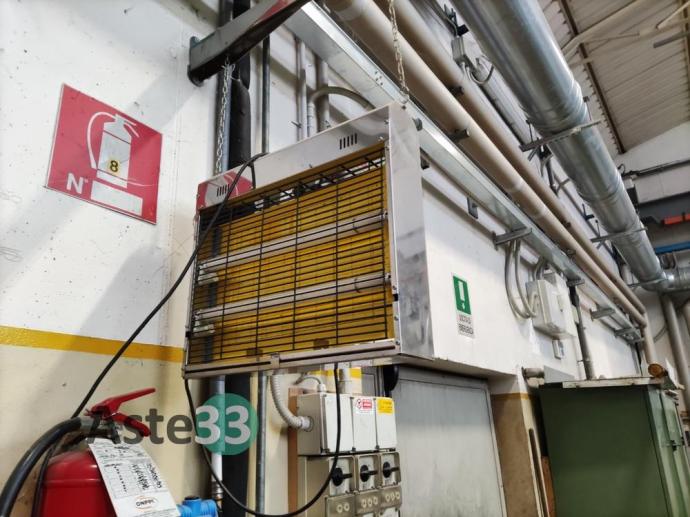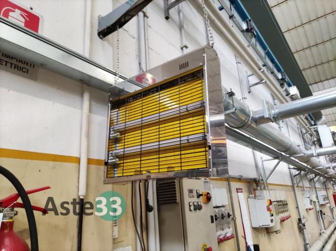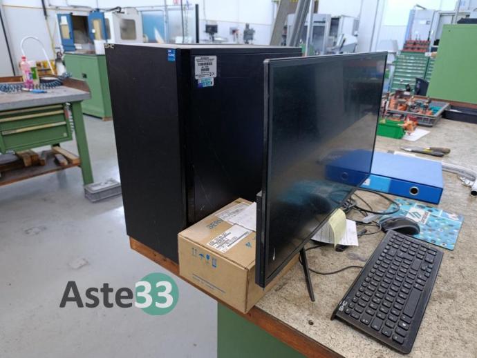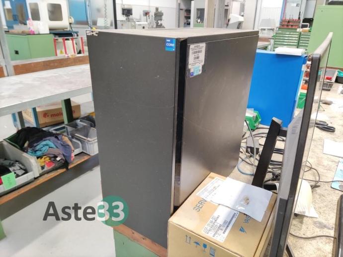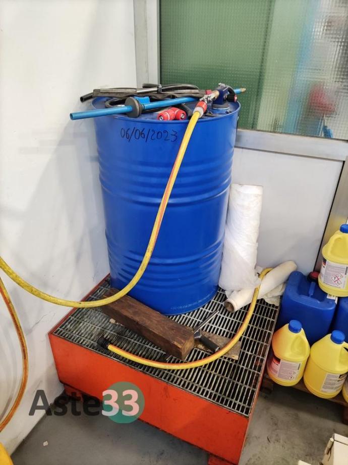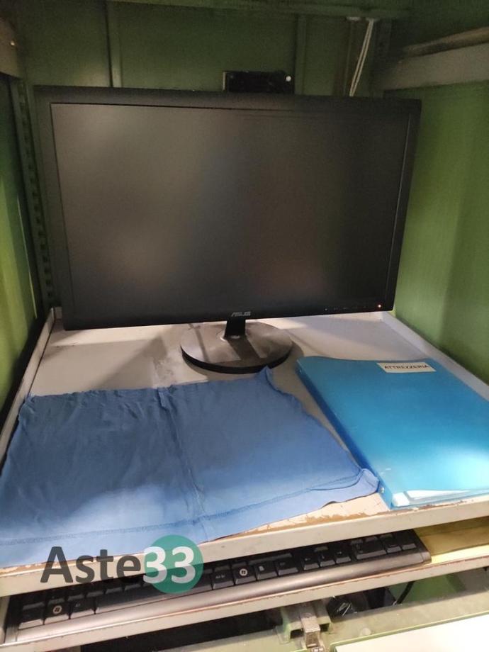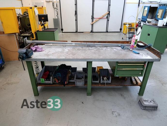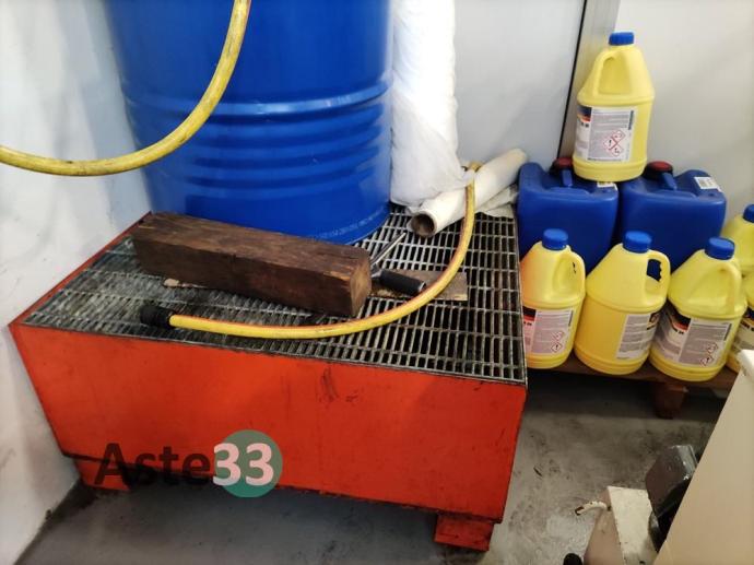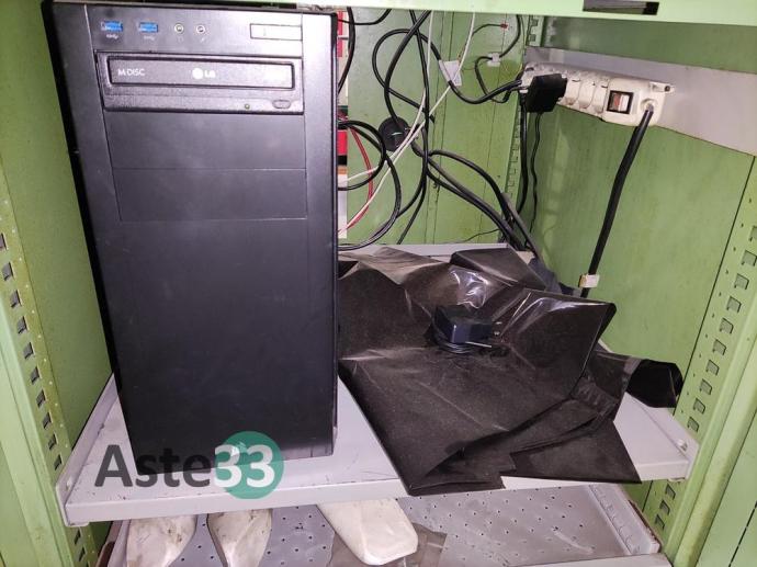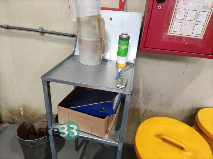 Arredamento per zona produzione composto da banchi da lavoro, mobili, vasca di contenimento liquidi, postazioni pc ed attezzature in sorte