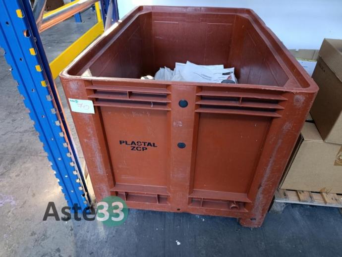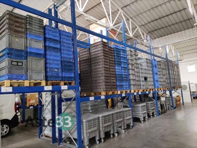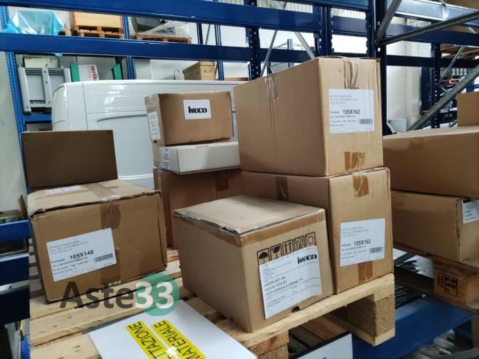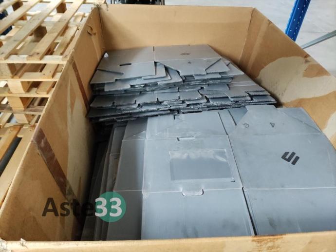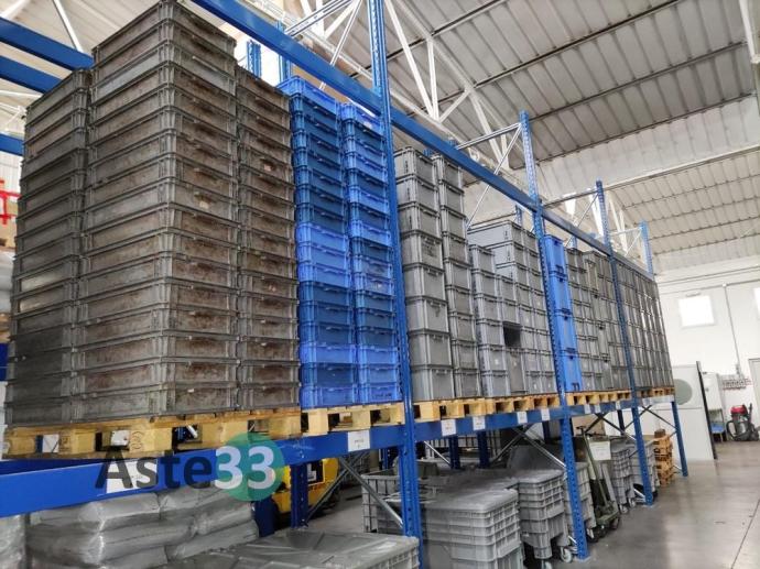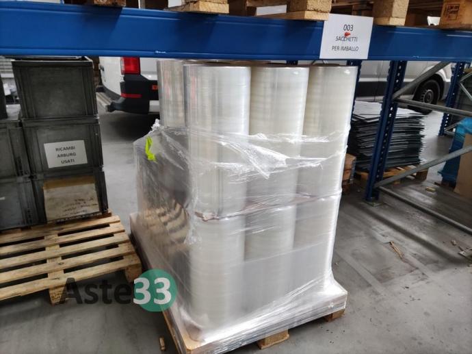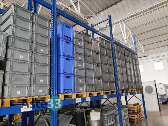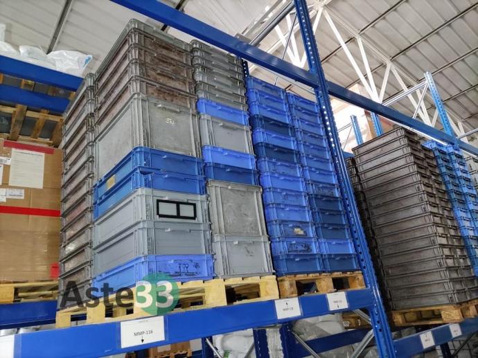 N. 760 contenitori in plastica, n. 20 rotoli di film per imballo, cartoni e scatole per imballo