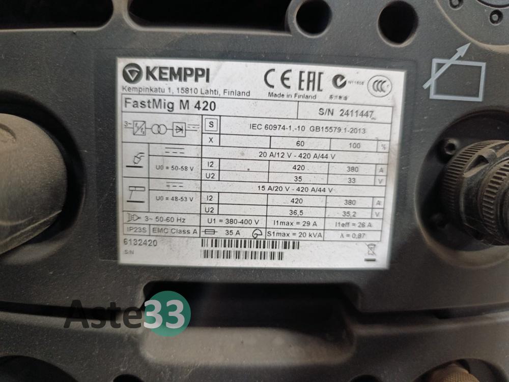 Saldatrice KEMPPI modello FASTMIG M 420 n. seriale 2411447 con trainafilo Kempii FastMig MXF 65.