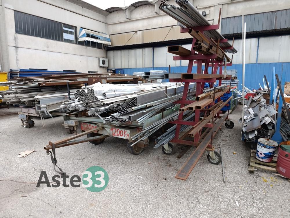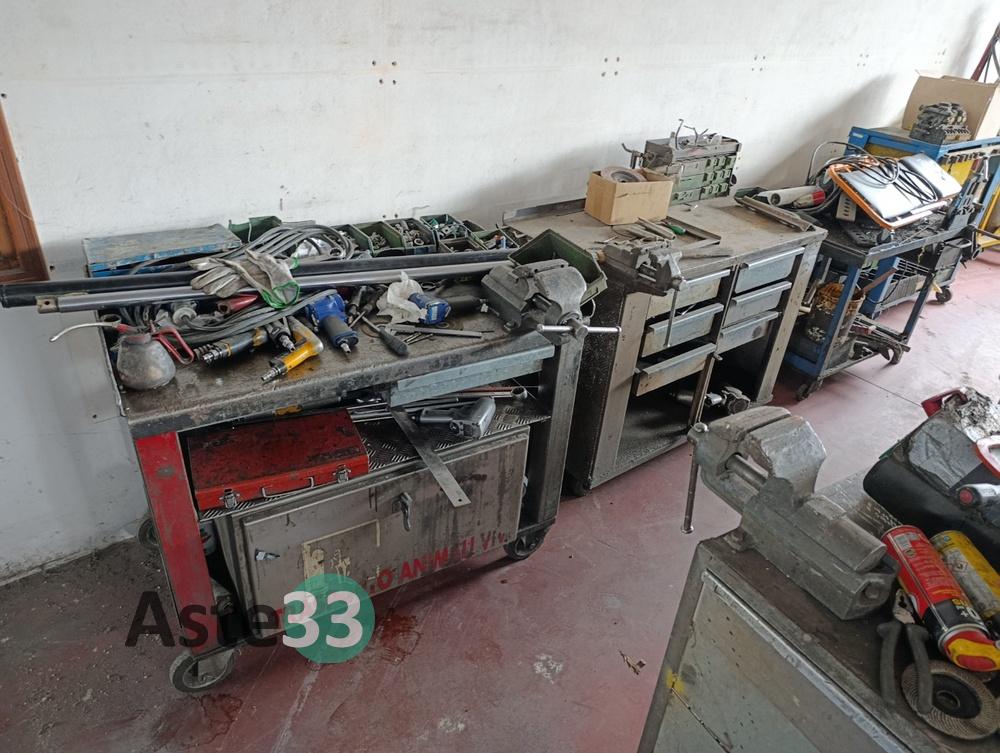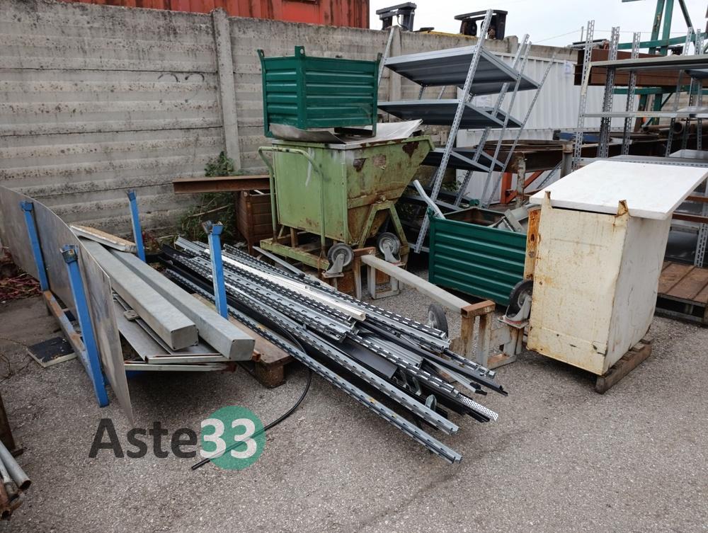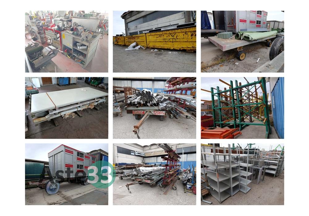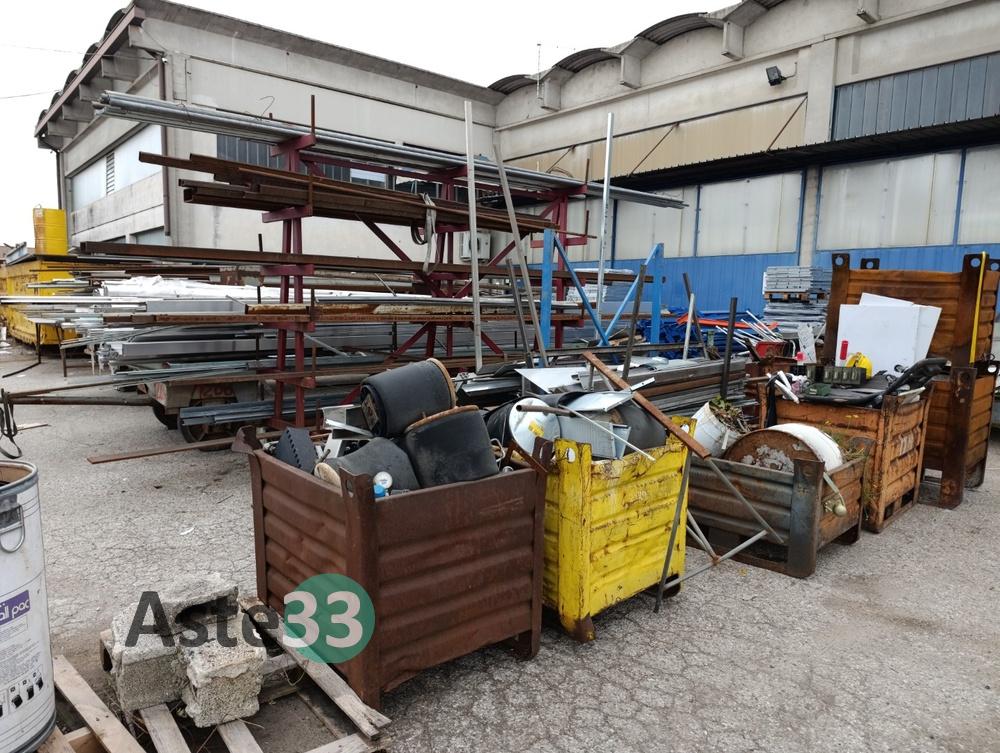 Giacenze di materiale ferroso ed alluminio, banchi da lavoro, scaffalature, minuterie, carrelli, cavalletti metallici, benne, cassoni scarrabili, box uso ufficio, macchinari ed attrezzature in sorte