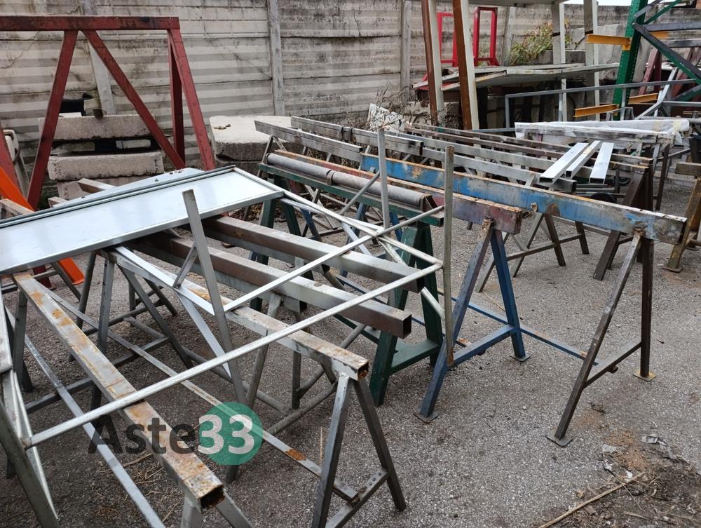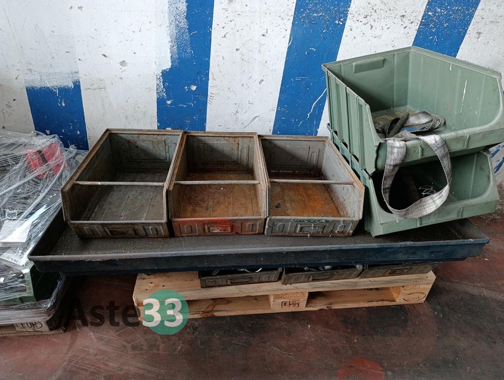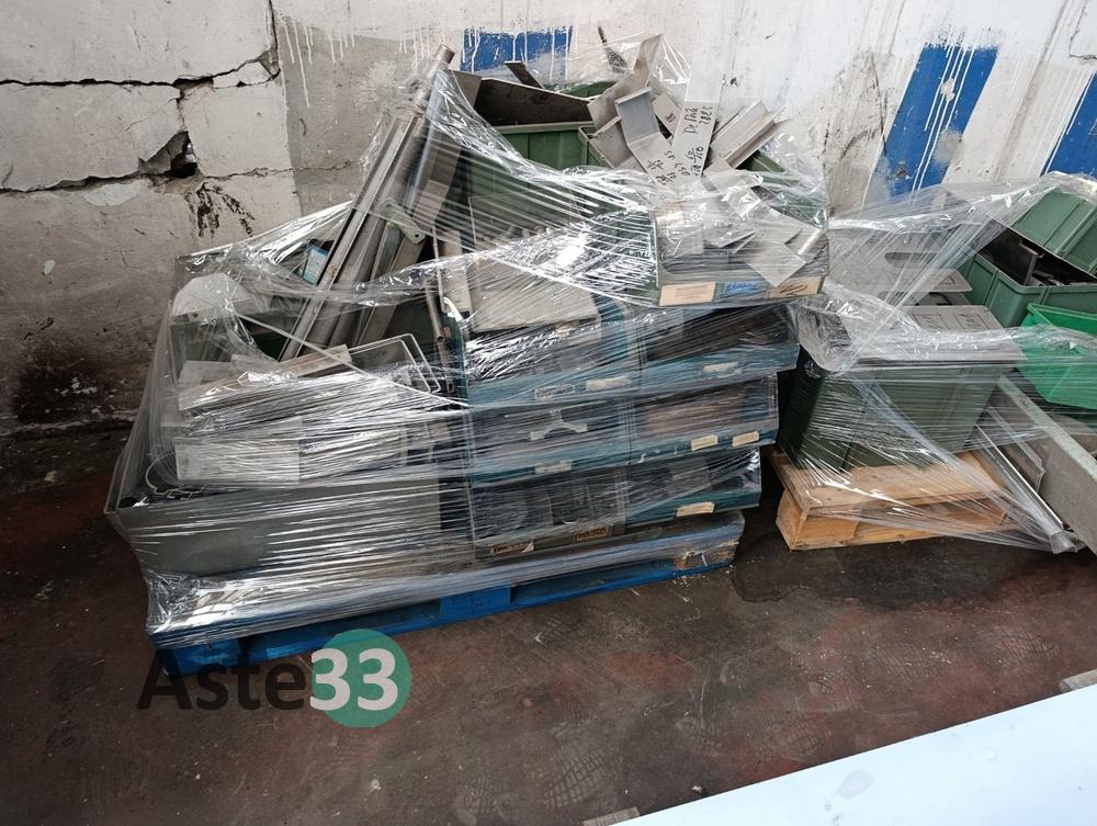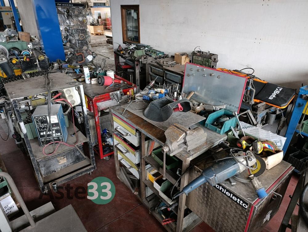 Giacenze di materiale ferroso ed alluminio, banchi da lavoro, scaffalature, minuterie, carrelli, cavalletti metallici, benne, cassoni scarrabili, box uso ufficio, macchinari ed attrezzature in sorte