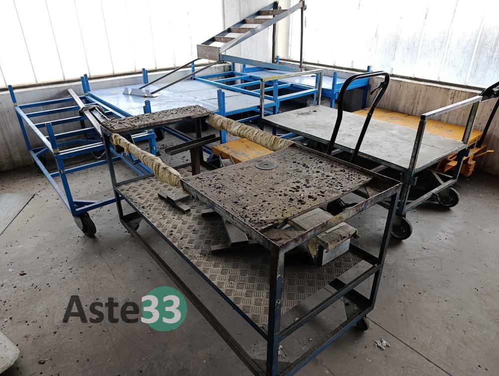 N.3 carrelli metallici su ruote 150x66cm circa;