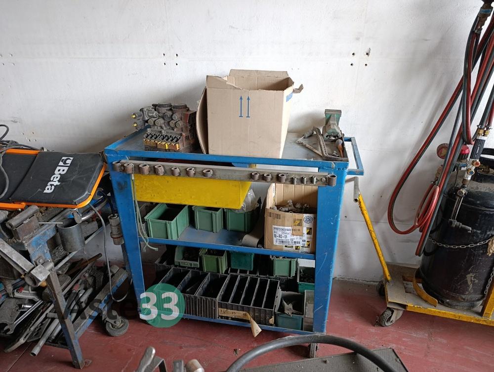 Scaffaletto su ruote a 4 ripiani metallico contenente minuterie e rivetti;