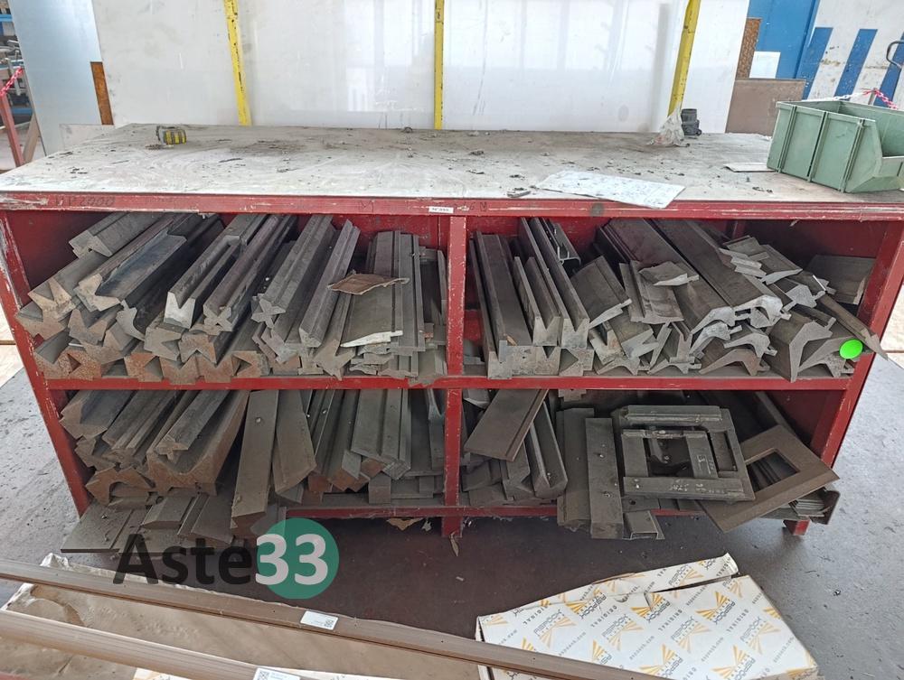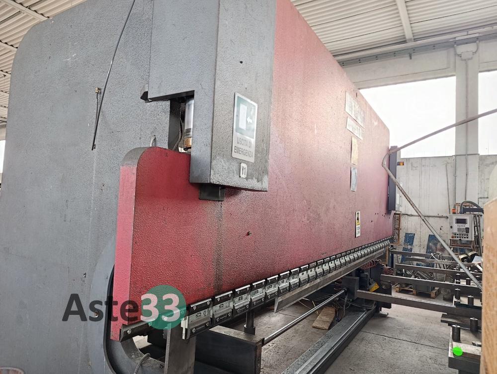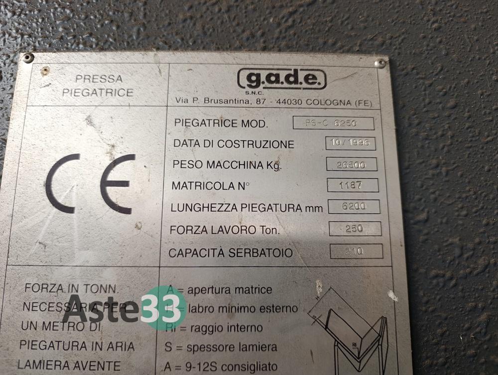Pressa piegatrice G.A.D.E. modello PS-C 6250 anno 1996, peso macchina 26.500kg matricola 1187 lunghezza piegatura 6200mm forza lavoro 250 tonnellate con relativo banco metallico con accessori macchina (lame e prismi) e quadro di controllo.