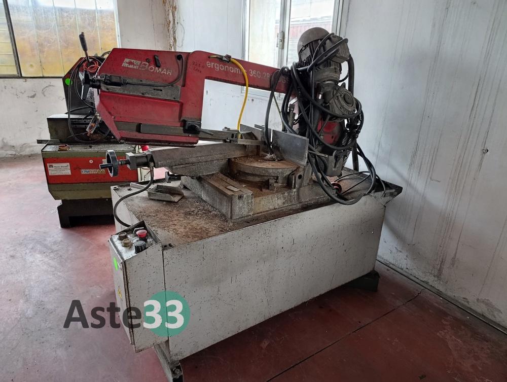 Segatrice a nastro BOMAR modello ERGONOMIC STG 280 DGSH n. 019 anno 2004 con rulliera; Segatrice a nastro BOMAR modello INDIVIDUAL 510.330 GA N. 043 anno 2004 con rulliera di carico.