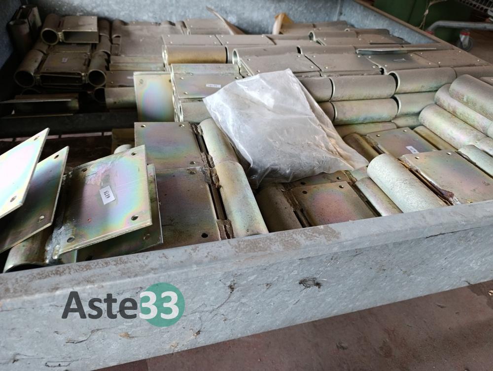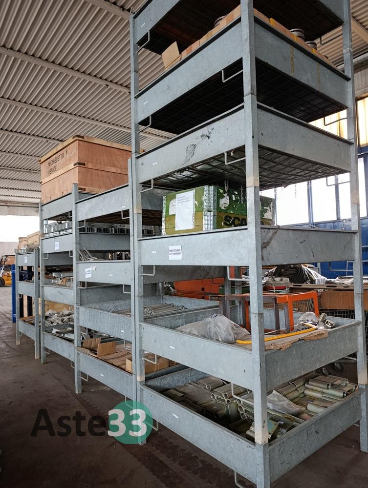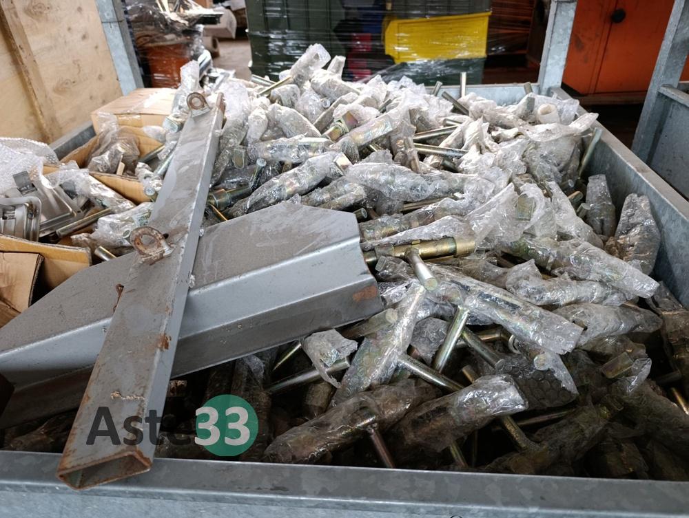 Giacenze di magazzino composte da: maniglie inox, maniglioni inox, catenaccio, asta di bloccaggio, supporto perno rampa, tiranti, staffe, bracci porte, guide, blocchi movibili, ganci, accessori in sorte per composizione di semirimorchi, ricambistica in sorte, motori e pompe in disuso, minuterie in sorte, giacenze di materiale di consumo (metri, dischi abrasivi ecc).