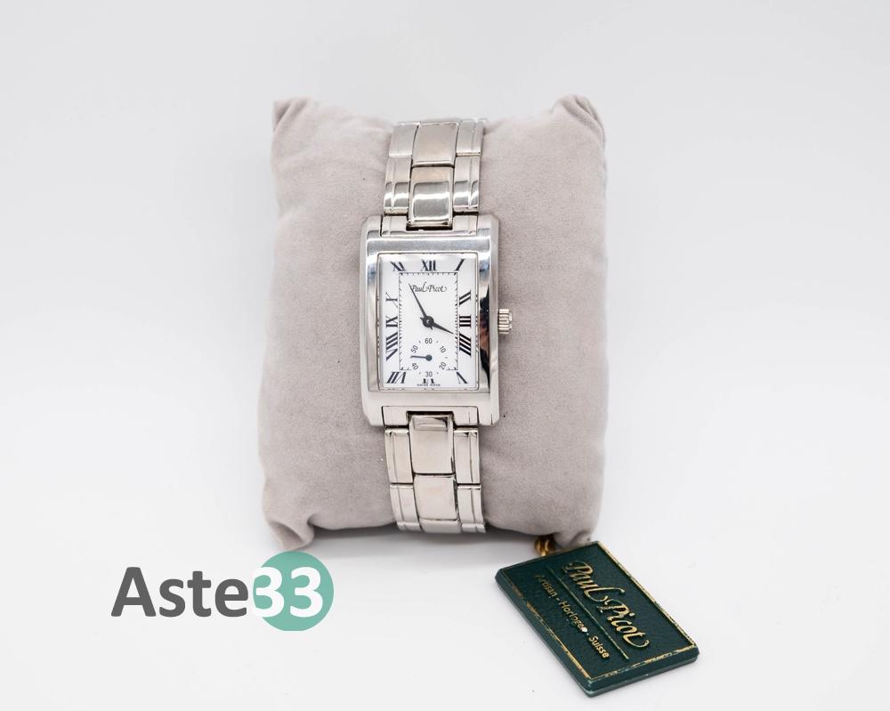 Orologio da uomo Paul Picot Brooklyn, Swiss Made, ref. 4015 CO1.Quadrante rettangolare, retro in acciaio inossidabile, misure 2,7x4cm (compresa la corona) resistente all’acqua.Cinturino in acciaio originale Paul Picot. Sprovvisto di confezione.