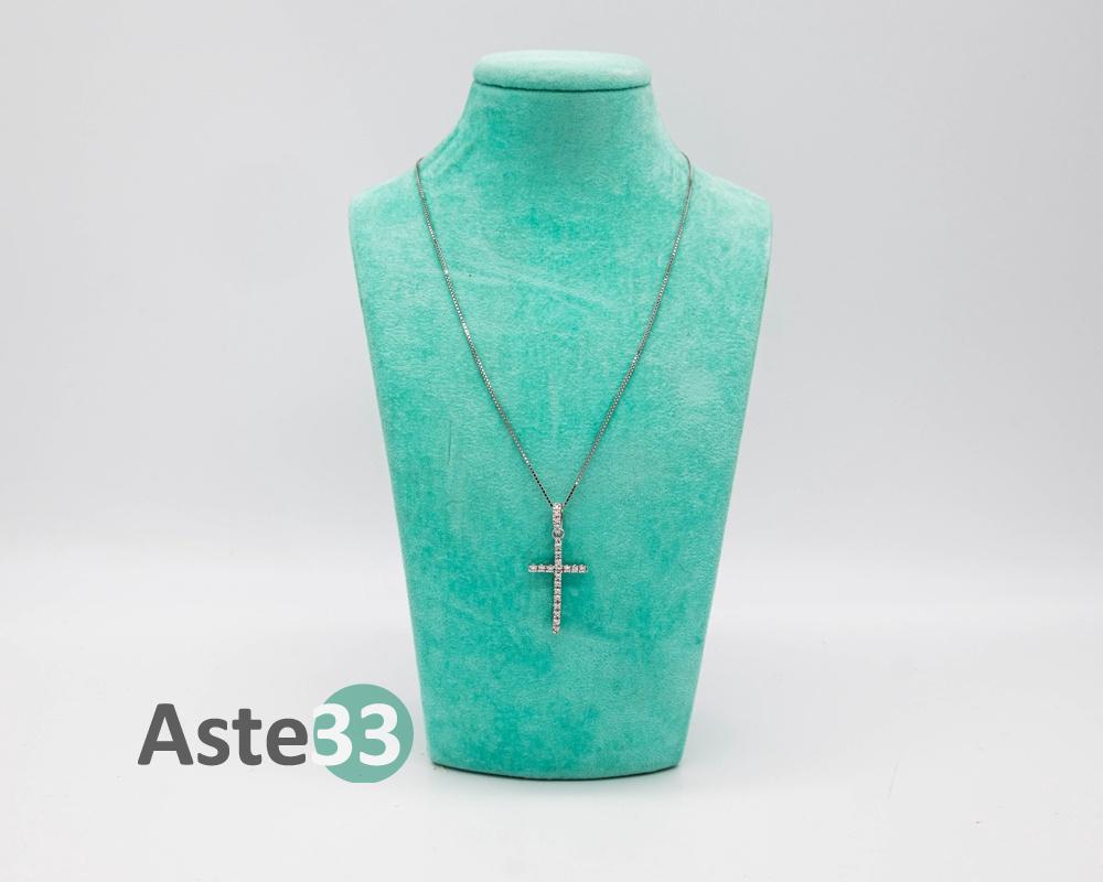 N.3 collane in oro bianco 750 con ciondoli a forma di croce.Peso complessivo ca. 16,25g.