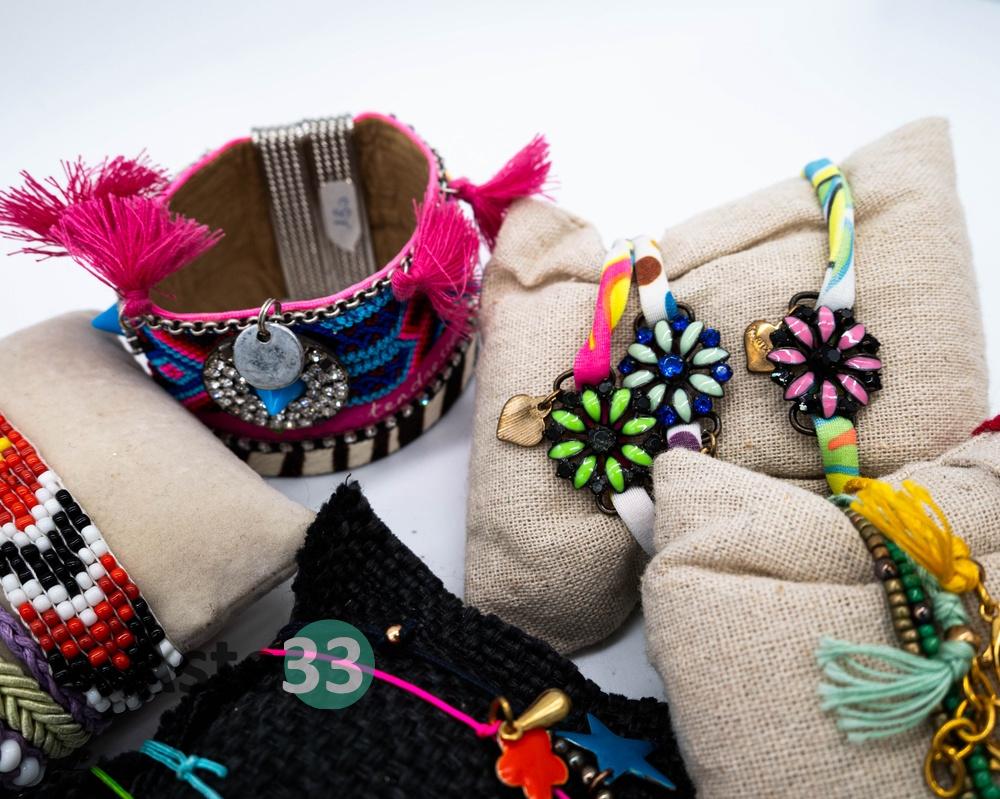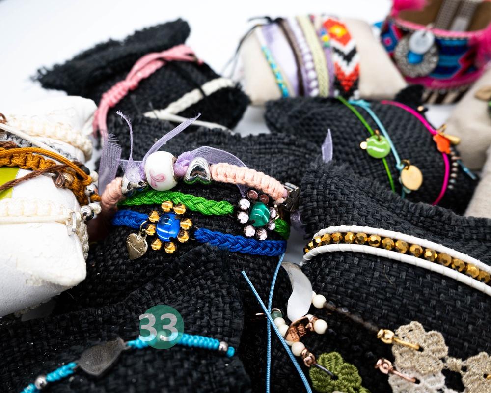 N. 49 braccialetti etnici in tessuto intrecciato di varie texture e dimensioni