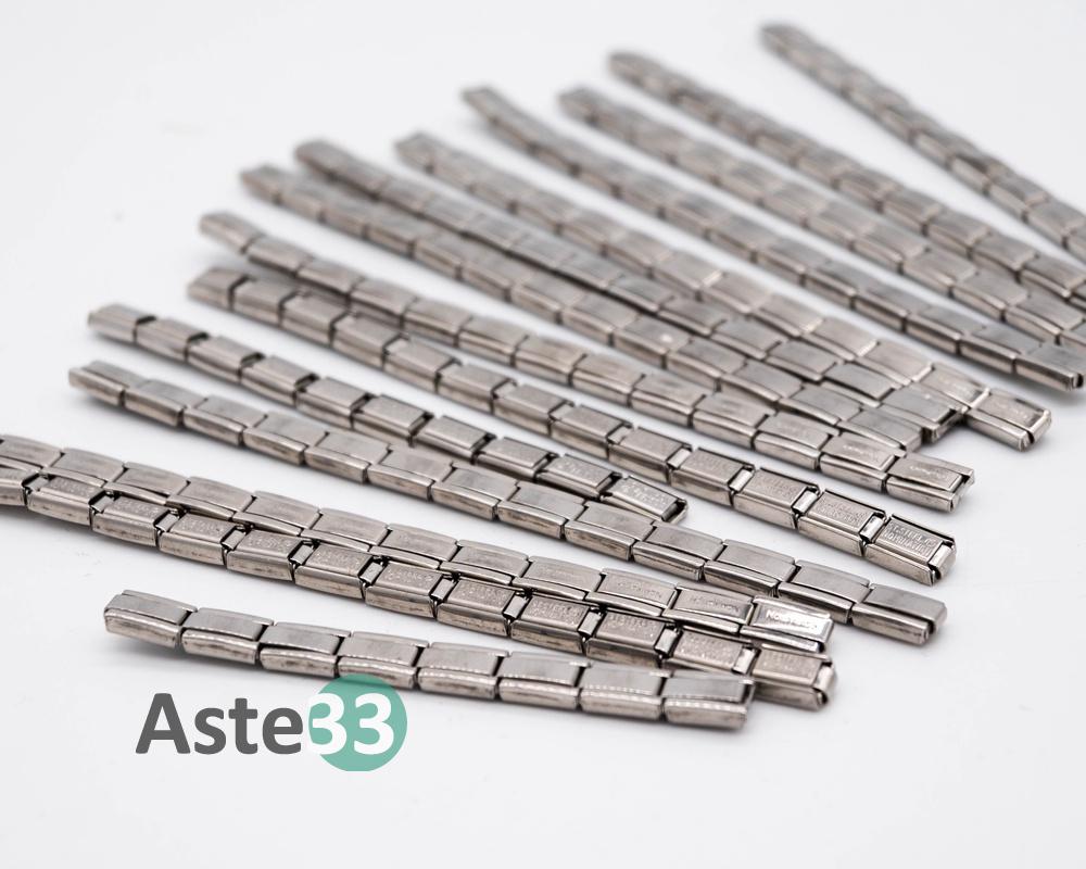 N.14 bracciali modulari in acciaio inox, composti esclusivamente da maglie neutre senza decorazioni.