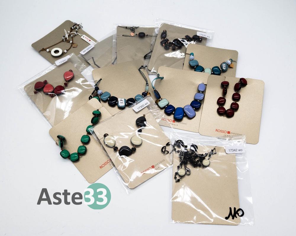N. 9 braccialetti con elementi in resina colorata e catene metallicheN. 3 braccialetti in argento 925 con elementi in resina colorata e catene metalliche N. 8 collane con catene sottili e inserti in resina colorataN. 2 collane in argento 925 con catene sottili e inserti in resina colorataN. 4 paia di orecchini pendenti e a lobo in resina colorata con chiusura in argento...