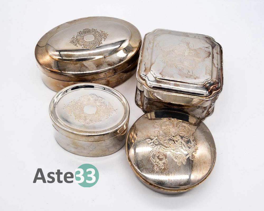 N.4 SCATOLE SILVER PLATED – N.3 CIOTOLE SILVER PLATED – N.1 SVUOTATASCHE SILVER PLATED – N.1 TAGLIACARTE SILVER PLATED – N.1 BROCCA SILVER PLATED