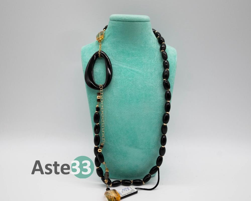 2 collane in pietre nere con dettagli in oro giallo 750