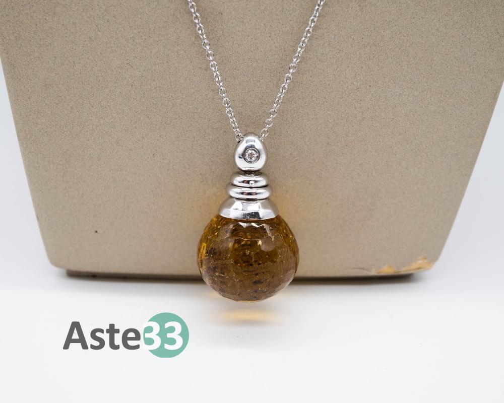 Collana in filo d’oro giallo 750 con pendente in ambra
