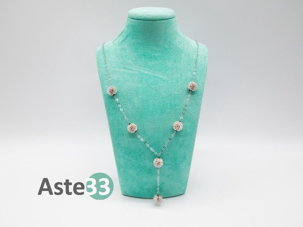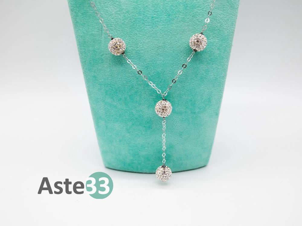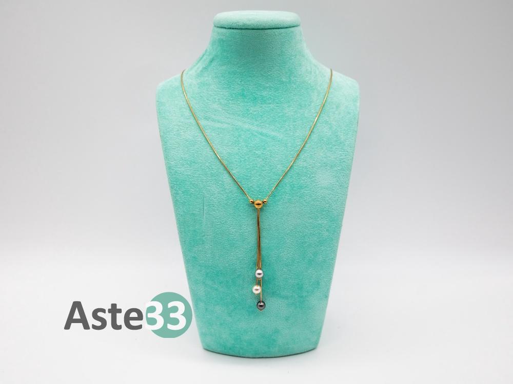 3 collane in oro bianco 750 con sfereCollana in filo d’oro giallo 750 con angioletto Collana in oro giallo 750 con perla e vetroCollana in oro 750 con perlePeso complessivo ca. 31,75gr