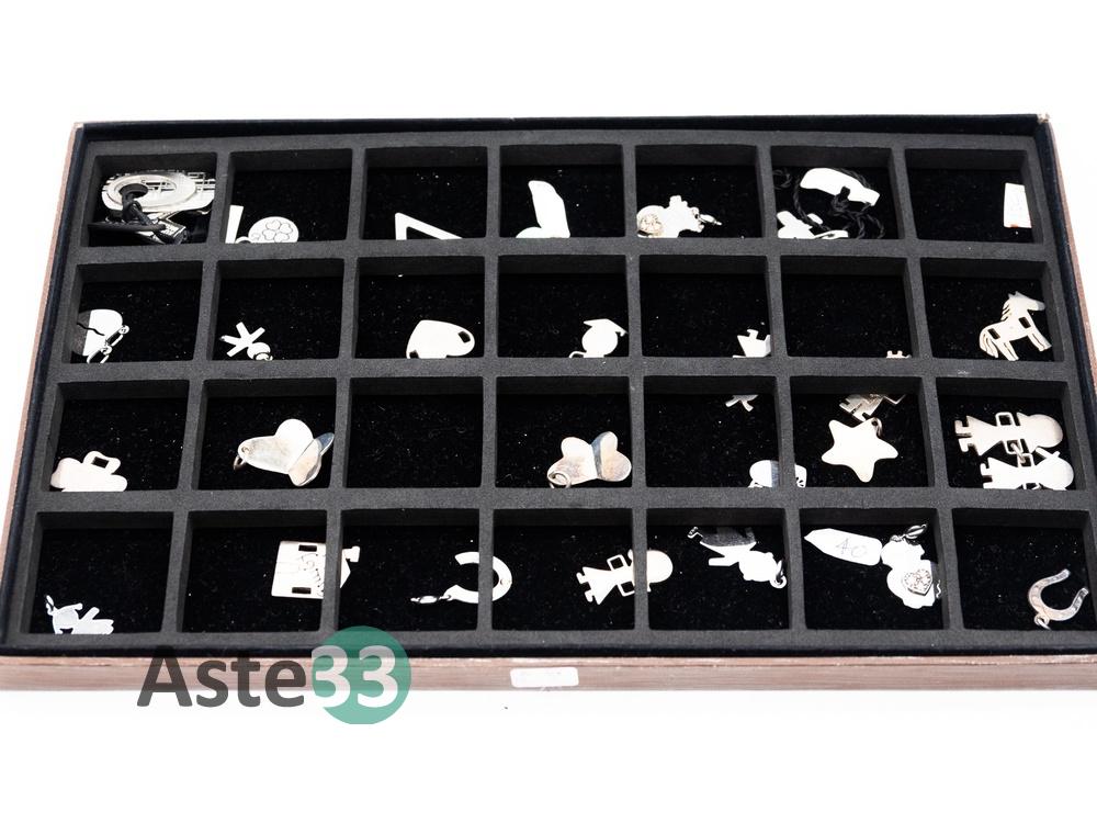 5 collane in cordino con pendente in argento 925Pendente in argento con monetaPendente in legno con dettagli in oro Pendaglio in argento basculante con dettagli madreperla27 pendagli in argento 925 varie forme7 pendagli di bigiotteria in metallo