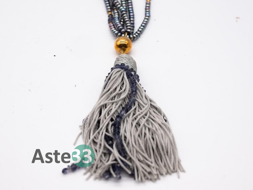 Collana di perle con dettagli in oro 750 - pendente in stoffa con pietre