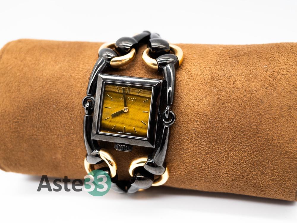 Orologio da donna Gucci referenza 11805255 – quadrante a fondo occhio di tigre forma quadrata 25x25mm – bracciale originale Gucci con borchieSprovvisto di confezione.