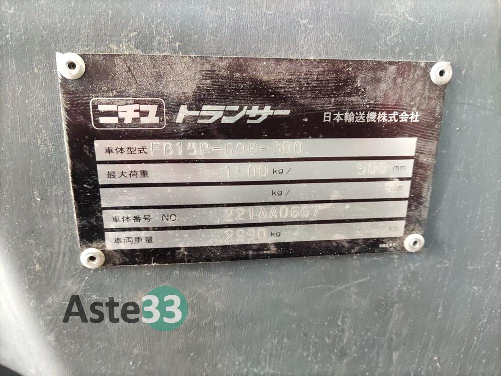 Carrello elevatore elettrico Miozzo Srl Nichiyu FB15P-60B-300P, serie n. 221AA0667 M9866, portata Kg 1.500;