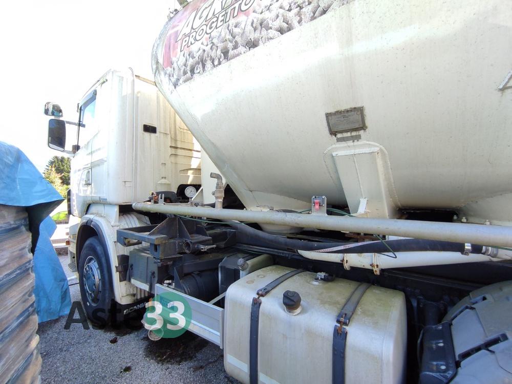 Autocarro scarrabile Scania con cisterna per polveri sfuse e impianto di pesatura integrato