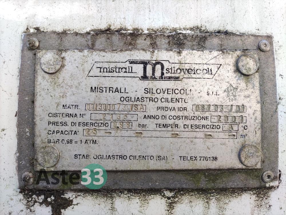 - cisterna per polveri sfuse, costruttore Mistrall Siloveicoli (Ogliastro Cilento – SA), anno di costruzione: 2001, pressione di esercizio: 0,98 bar, capacità: 25 m³ circa, matricola n. 01/300073/SA, cisterna n. 2135.