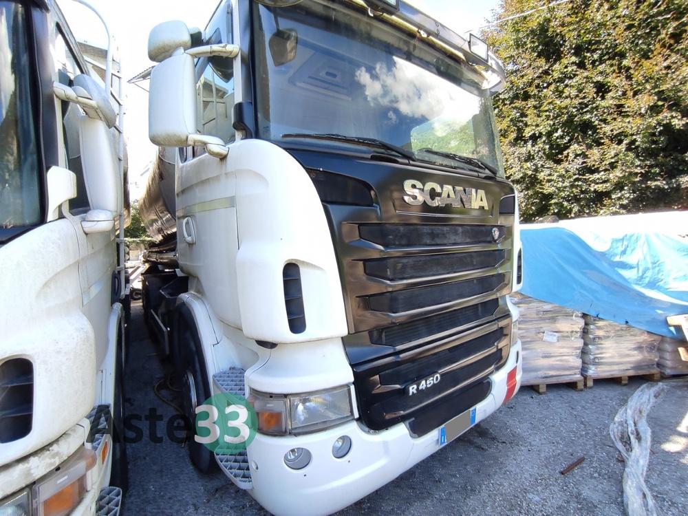 Autocarro per trasporto di cose (scarrabile), marca SCANIA, modello R440 LB 6x2*4, targato FG935BR, data di prima immatricolazione 14.05.2010, cilindrata cm³ 12.740, potenza Kw 324, alimentazione a gasolio (euro 5), lunghezza 8,560 m, larghezza 2,550 m, portata 15.780, ultima revisione regolare effettuata in data 22.10.2021 con chilometraggio rilevato in sede di revisione 1.141.862, con carta di circolazione originale, sprovvisto del certificato di proprietà, con n. 1 chiave.