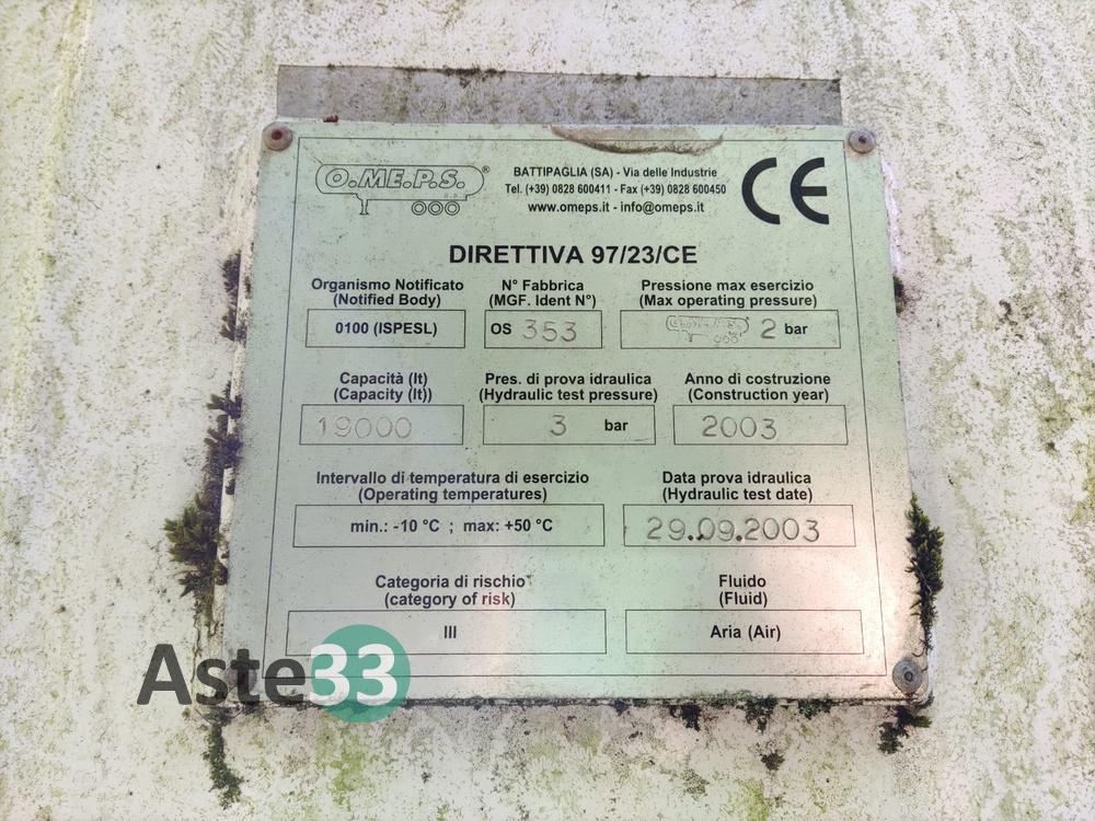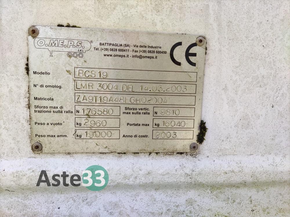 Semirimorchio per trasporto specifico di granulati o pulverulenti (Cisterna di capacità 19.000 kg.) O.ME.P.S. BCS 19, targato AC95063, data di immatricolazione 07.01.2004, portata 16.040 kg., lunghezza 7,397 m, larghezza 2,550 m., completo della Carta di Circolazione originale e sprovvisto del Certificato di Proprietà.