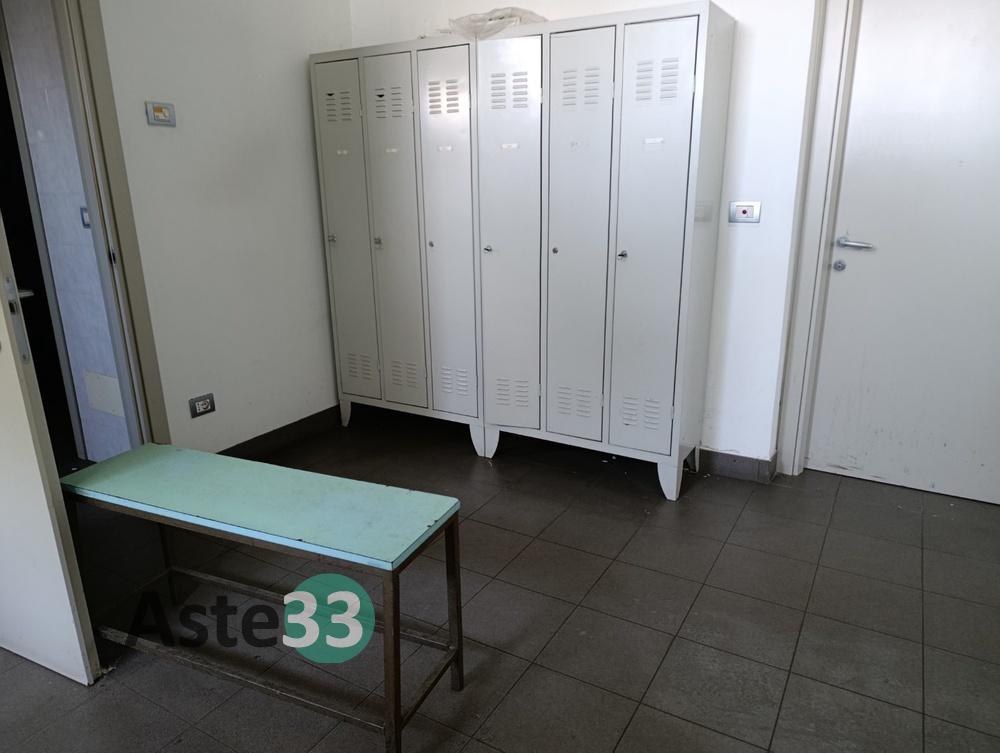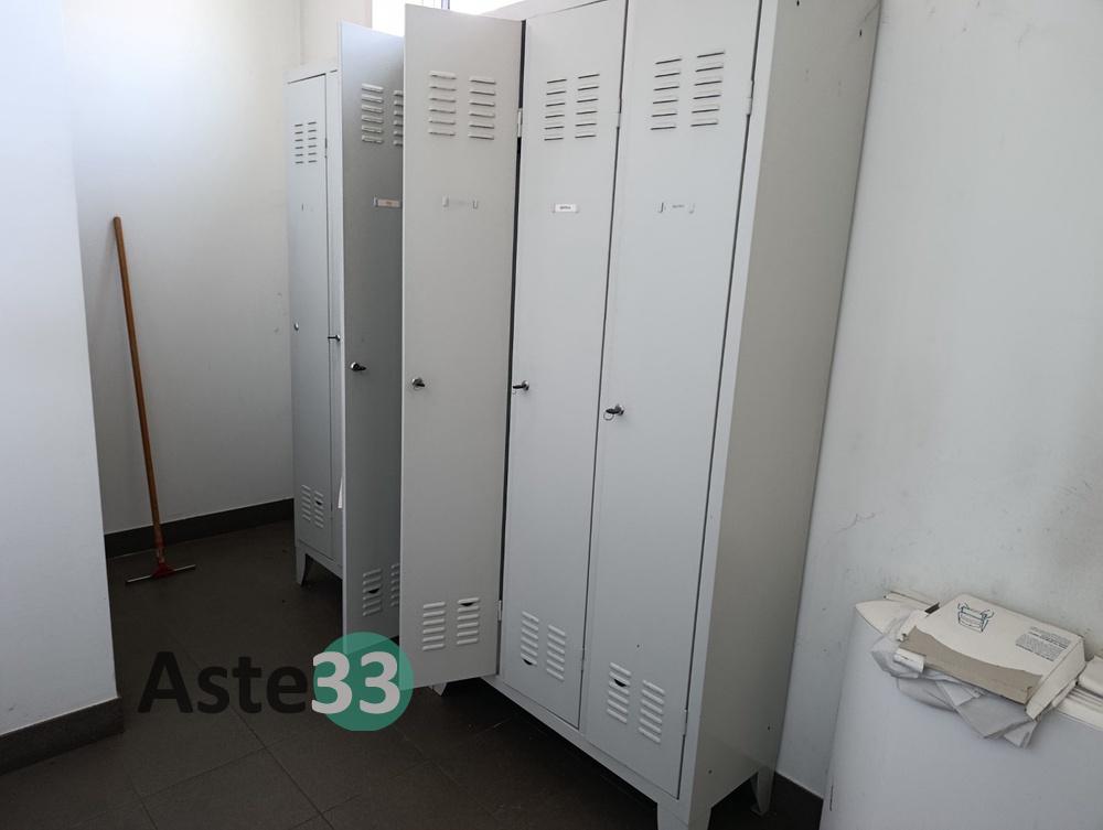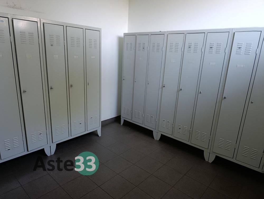 N.4 armadietti metallici ad uso spogliatoio a 3 ante, dimensioni 90x35cm x h.180cm;N.9 armadietti metallici ad uso spogliatoio con 3 ante, dimensioni 90x35cm x h.180cm;N.5 armadietti metallici ad uso spogliatoio con 2 ante, dimensioni 80x35cm x h.180cm;Panca.