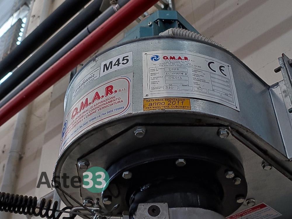 Impianto di aspirazione marca O.M.A.R. matricola 05113, modello EL1100 78 B anno 2005, composto da 1 braccio ed 1 ventola.