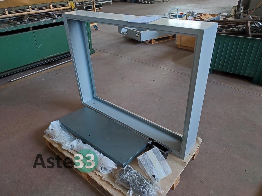 Banco da lavoro con struttura metallica con sopra materiale metallico;