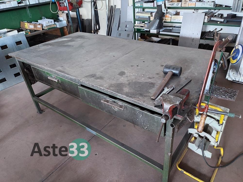 Banco metallico con morsa, dimensioni piano 100x130cm;