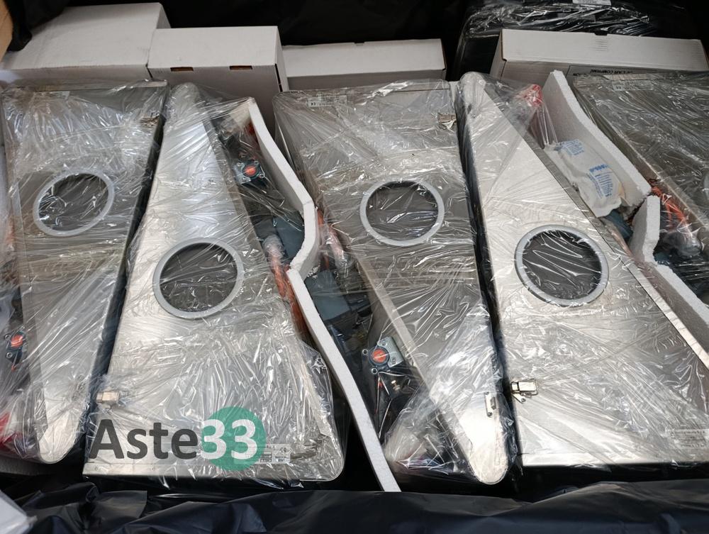 N.666 tavoli da lavoro imballati con cassetti, n.710 sistemi per lo studio della pneumatica ed elettropneumatica con accessori, contenuti in 240 casse