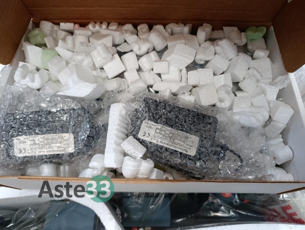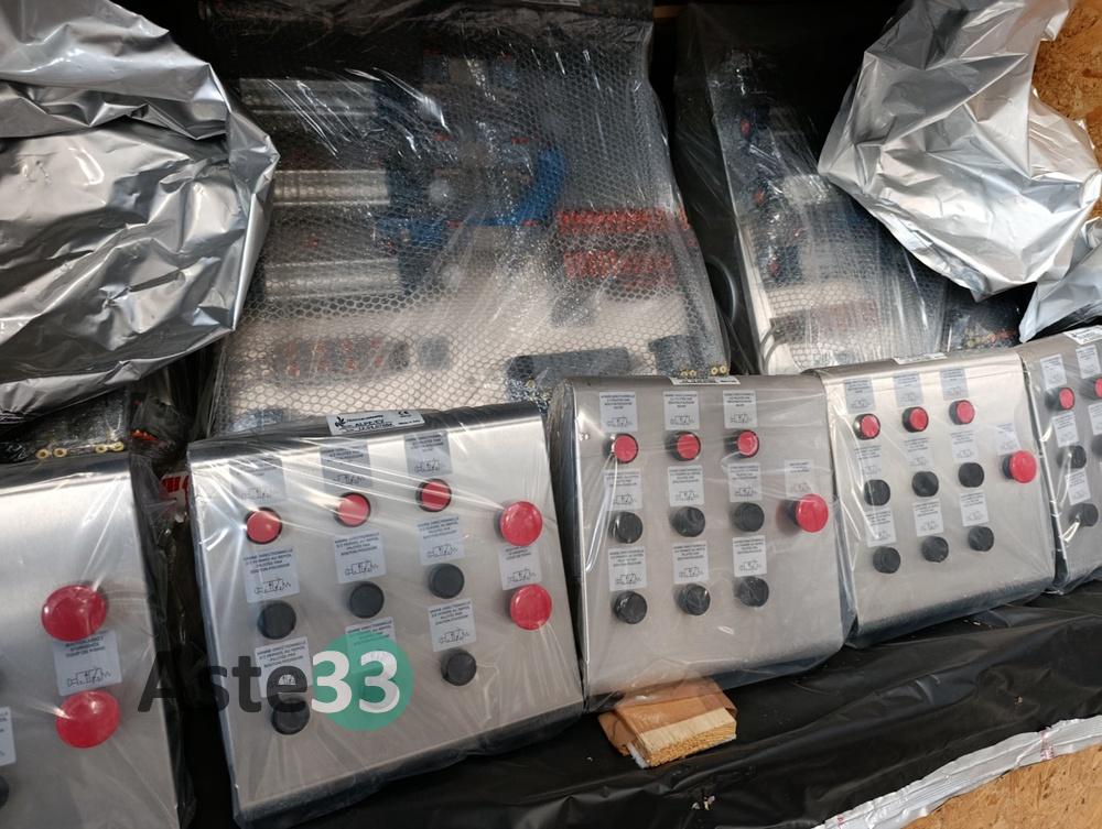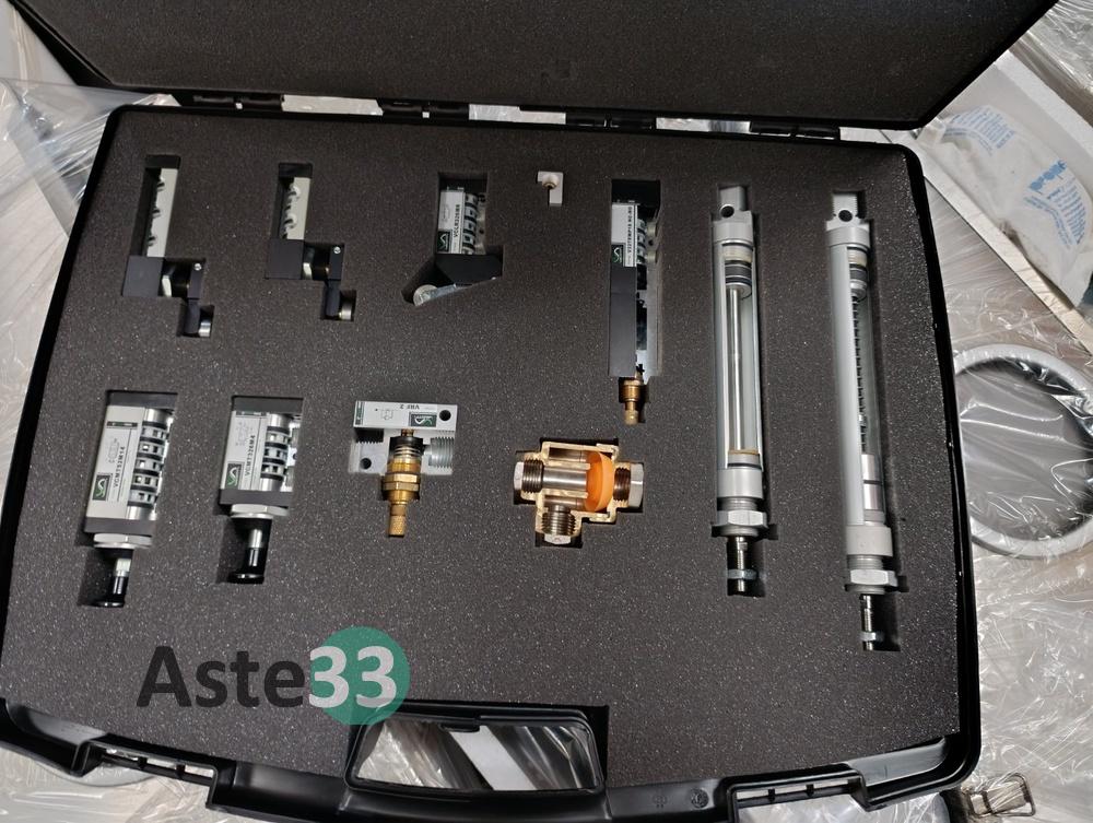 N. 120 casse in legno di dimensioni di circa cm. 190x115x75 contenenti un totale di n. 360 sistemi per lo studio della elettropneumatica, n. 120 kit di raccorderia pneumatica ed elettrica, silenziatori di scarico, n. 120 kit per la distribuzione dell’aria compressa, n. 120 valigie con componenti sezionati pneumatici ed elettropneumatici, n. 360 poster in sorte e n. 360 braccio manipolatore pneumatico.