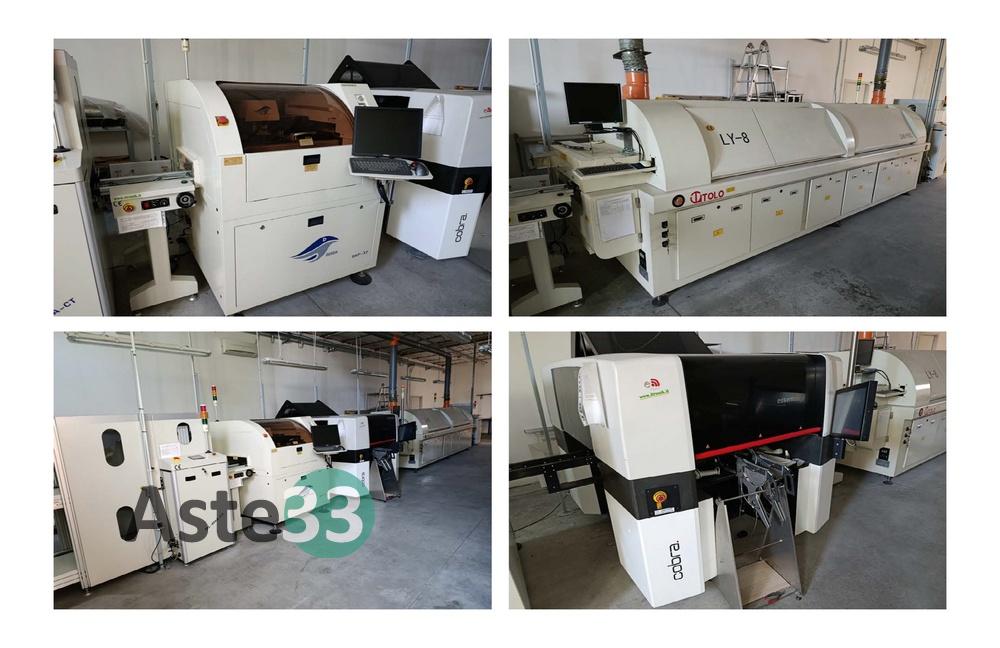 Linea per lavorazione e montaggio di schede in smt con caricatori e scaricatori, serigrfica I-Tronik, macchina Pick and Place, forno ad 8 zone, generatore di azoto e macchine aspiranti