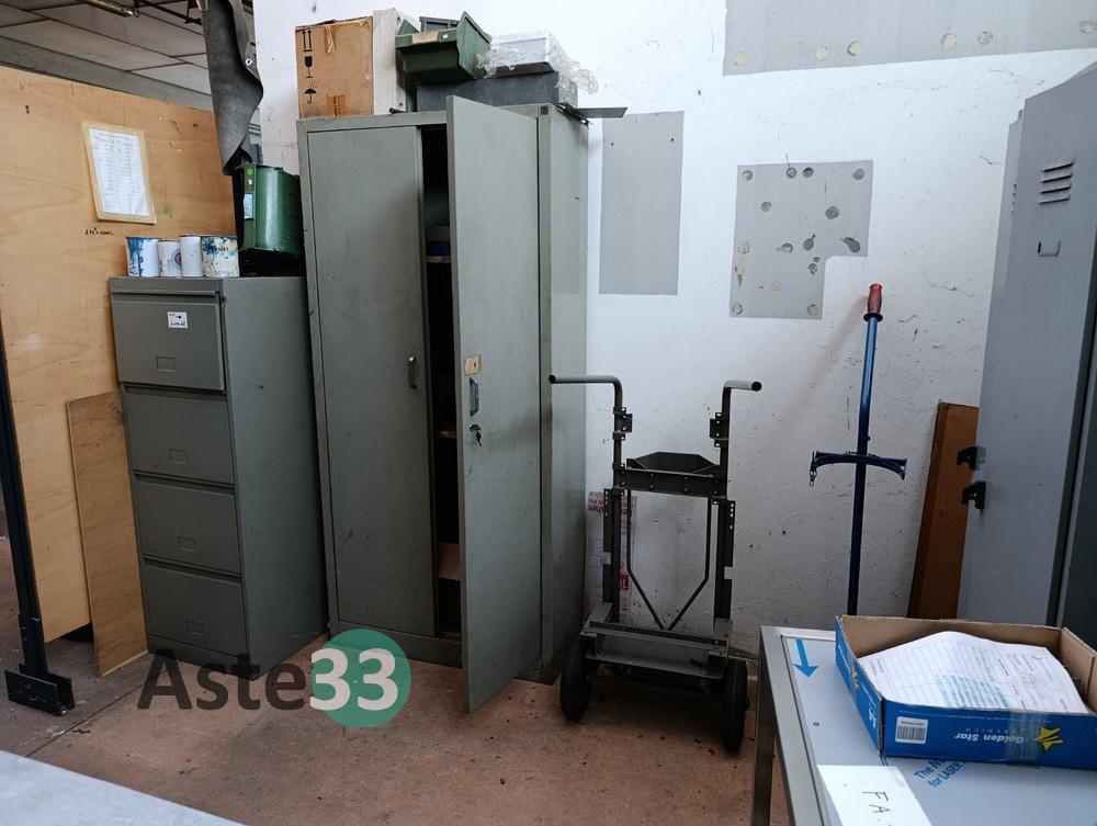 Armadio metallico con 2 ante battenti, dimensioni 90x40cm x h.190cm, contenente materiale da recupero in sorte;