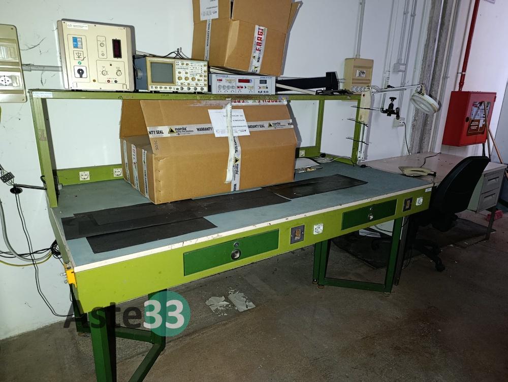 Banchi da lavoro, oscilloscopio Kenwood, trasformatore e strumentazioni in sorte